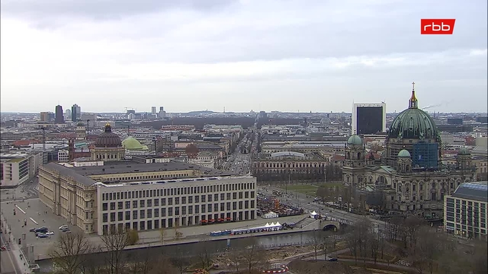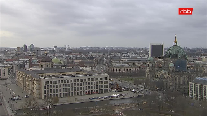 Berlin, Deutschland - 12.1 km von Berlin Wuhlheide: Stadtzentrum - Blick auf das Brandenburger Tor, den Berliner Dom, Kanzleramt, Alexanderplatz und Reichstag.