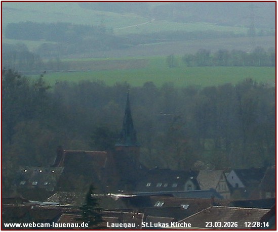 Lauenau, Deutschland - 13.5 km von Bonnigsen: Blick über Lauenau - Die Webcam zeigt einen Blick auf auf die St. Lukas Kirche zu Lauenau. Der Flecken Lauenau liegt am Fuße des Deisters im Naturpark Weserbergland und gehört zum Landkreis Schaumburg.