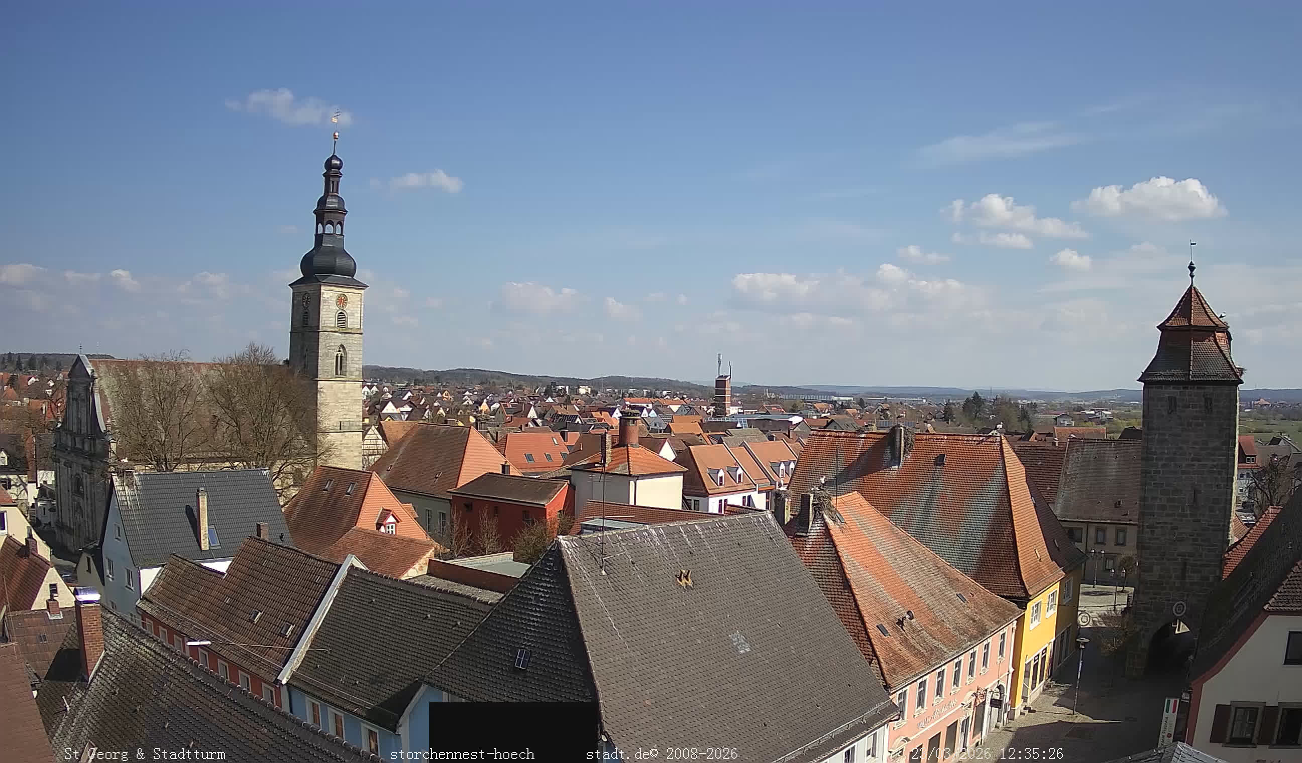 Treuchtlingen, Deutschland - 40.9 km von Buschelbach: Rathausplatz Treuchtlingen - Die Webcam zeigt den Blick vom Rathausgebäude Richtung Südost (Markgrafenkirche).