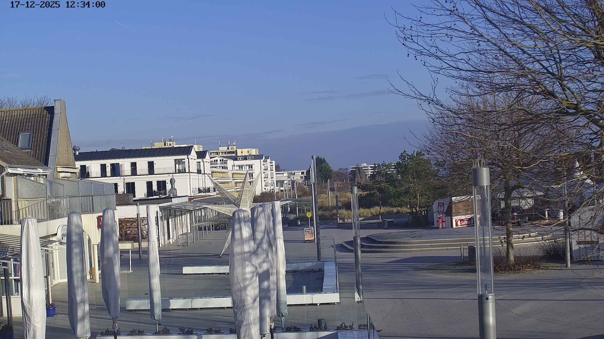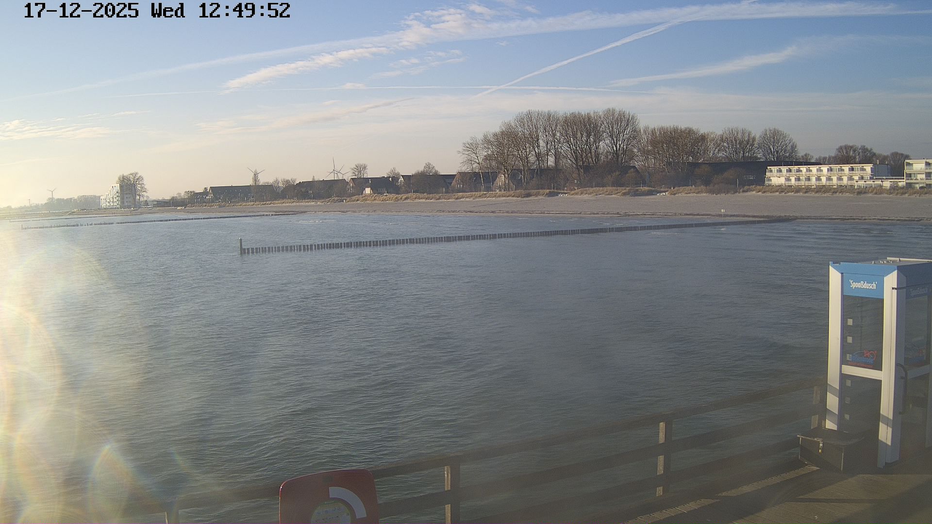 Heiligenhafen, Deutschland - 4.8 km von Dazendorf: Panoramakamera Ferienhaus UTKIEK - Die Livecam befindet sich am 5-Sterne-Ferienhaus UTKIEK, dem neuen, barrierefreien Reethaus (138 qm) in exponierter Lage im Strand Resort Heiligenhafen. Unmittelbar an der Ostsee gelegen hat man von hier einen traumhaften Rundumblick auf die große Erlebnis-Seebrücke, dem neuen Highlight Heiligenhafens, auf Fehmarn mit der prägnanten Sundbrücke, auf das Naturschutzgebiet Graswarder mit seiner faszinierende Vogelwelt und den einzigartigen Villen sowie auf den beliebten 5-Sterne Marina Yachthafen mit seinem maritimen Flair.