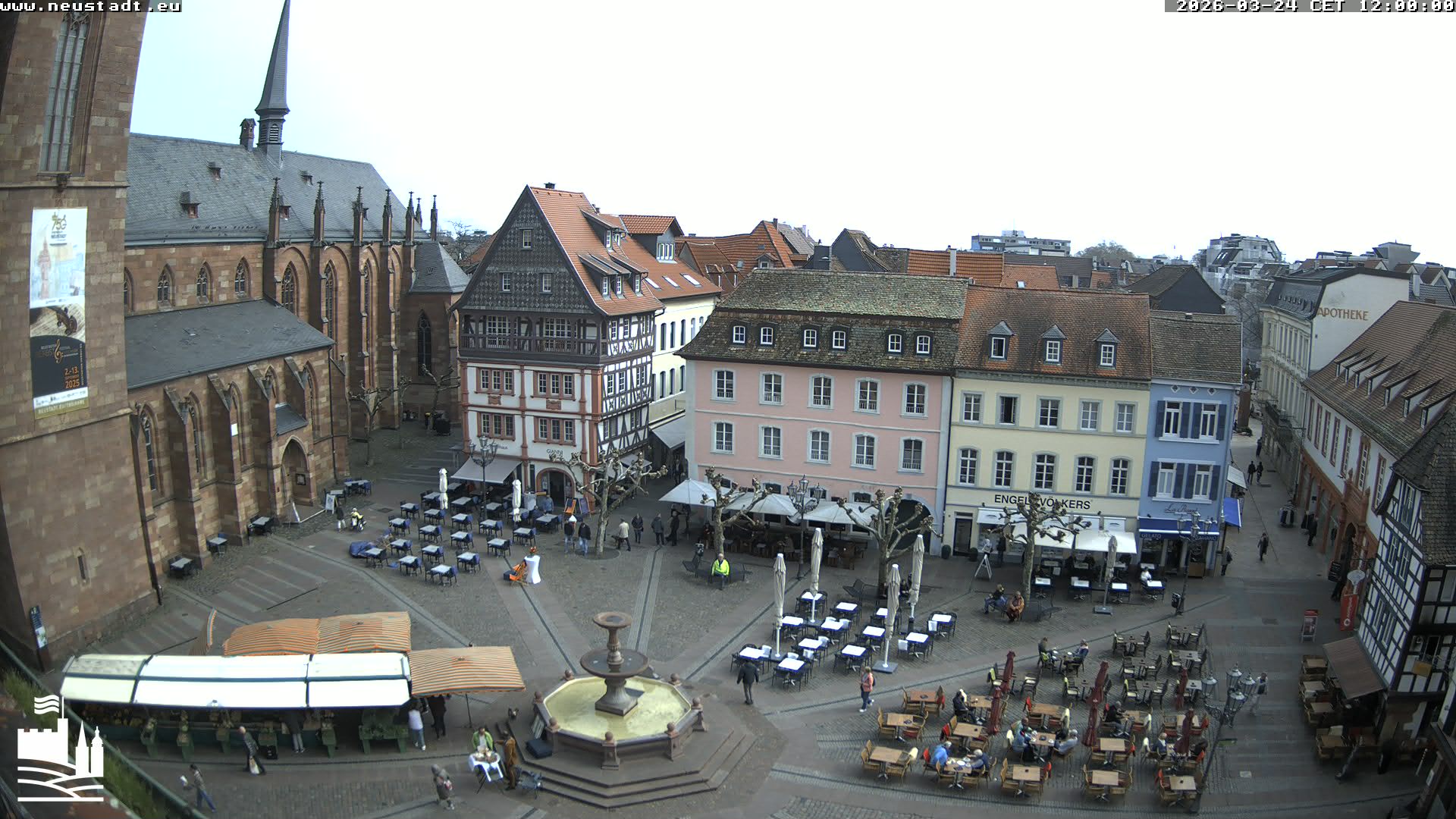 Neustadt a. d. Weinstraße, Deutschland - 16.5 km von Diemerstein: Marktplatz mit Stiftskirche - Blick auf den Marktplatz und die Stiftskirche in Neustadt an der Weinstraße.