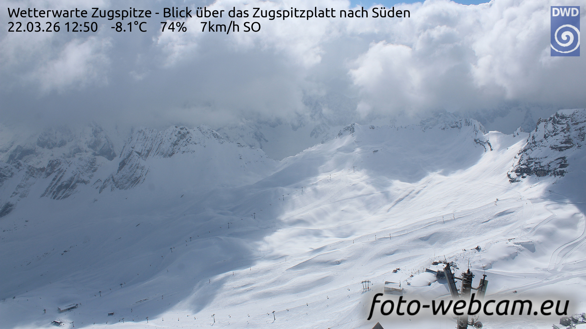 Zugspitze, Deutschland - 3.7 km von Eibsee: HD Foto-Webcam Zugspitze Süd