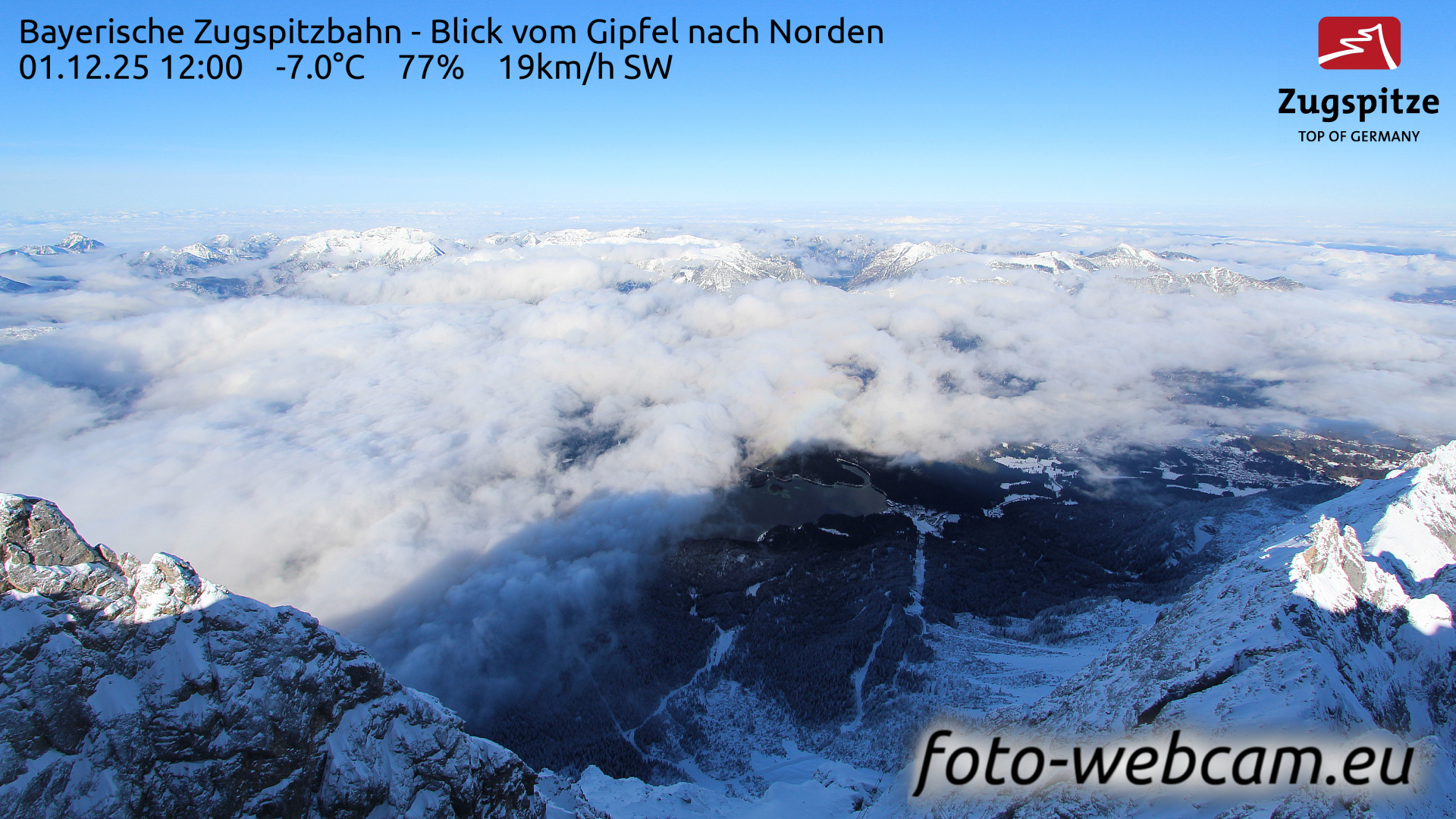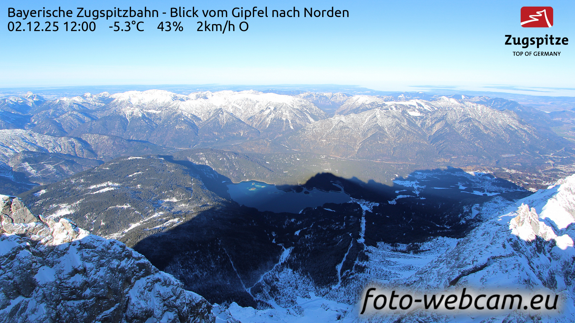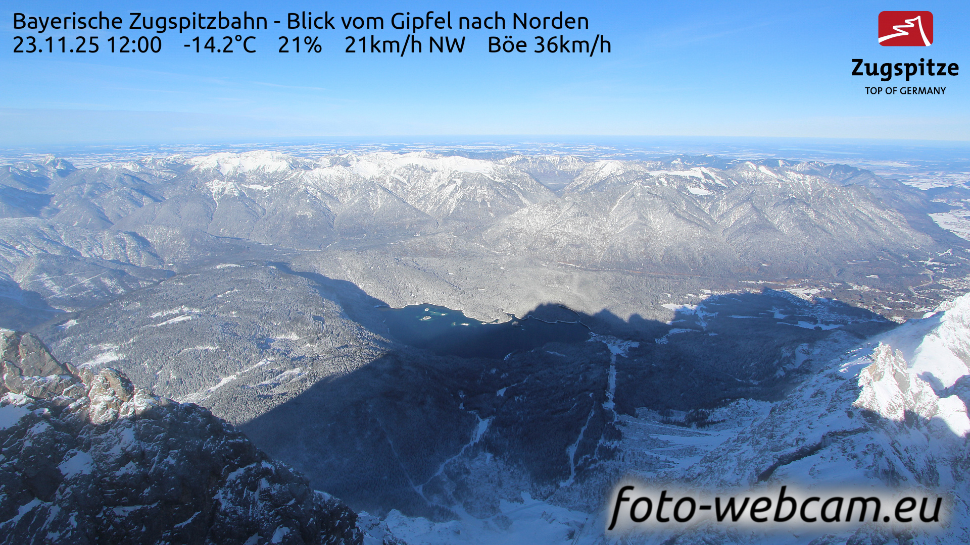 Zugspitze, Deutschland - 3.7 km von Eibsee: HD Foto-Webcam Zugspitze Nord
