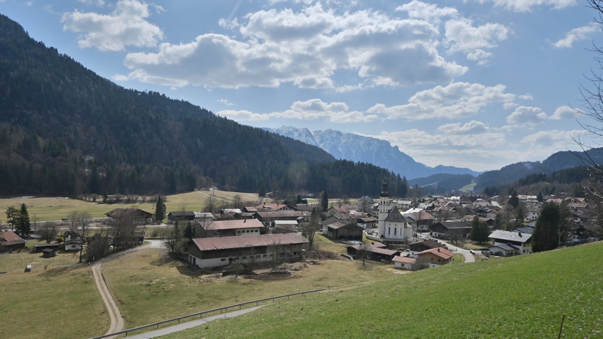 Aschau im Chiemgau, Deutschland - 14.3 km von Gasteig: Landschaftsblick - Webcam-Blick von Höhenberg auf Aschau mit Schloss Hohenaschau. Rechts im Bild das Zellerhorn, links Teil von Kampenwand, im Hintergrund Geigelstein.