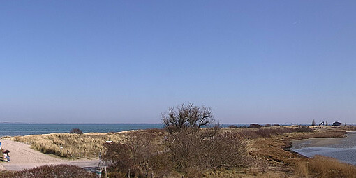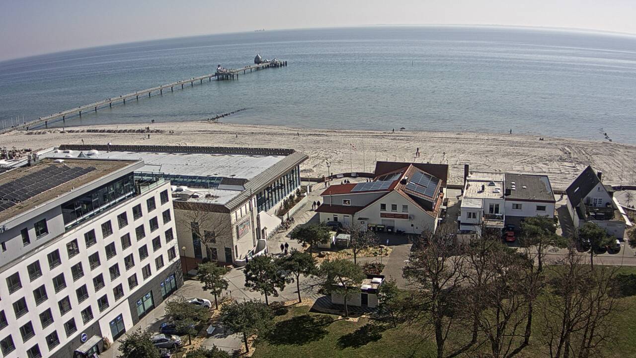 Heiligenhafen, Deutschland - 15.9 km von Grube: Panoramakamera Ferienhaus UTKIEK - Die Livecam befindet sich am 5-Sterne-Ferienhaus UTKIEK, dem neuen, barrierefreien Reethaus (138 qm) in exponierter Lage im Strand Resort Heiligenhafen. Unmittelbar an der Ostsee gelegen hat man von hier einen traumhaften Rundumblick auf die große Erlebnis-Seebrücke, dem neuen Highlight Heiligenhafens, auf Fehmarn mit der prägnanten Sundbrücke, auf das Naturschutzgebiet Graswarder mit seiner faszinierende Vogelwelt und den einzigartigen Villen sowie auf den beliebten 5-Sterne Marina Yachthafen mit seinem maritimen Flair.