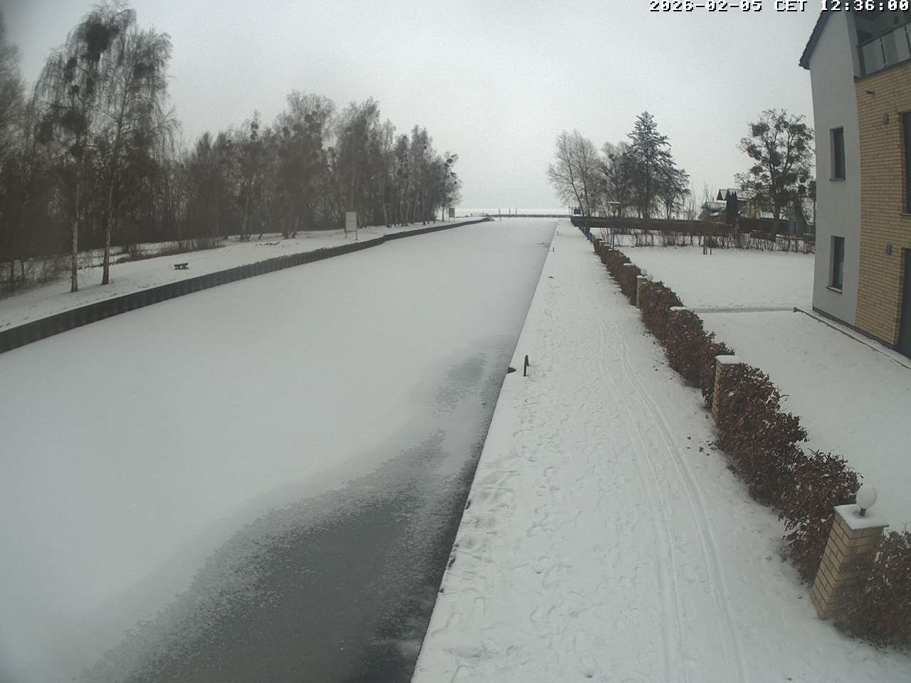 Rechlin, Deutschland - 32 km von Hinrichshagen: Webcam Hafendorf Müritz - Mit dieser Webcam sehen Sie die Ausfahrt aus der Marina Müritz. Der sogenannte Stichkanal ist etwa 180 Meter lang und verbindet den Claassee mit der Müritz.