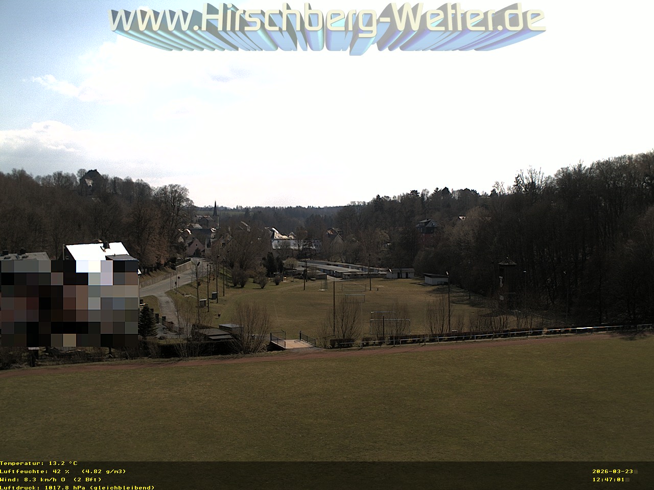 Hirschberg (Saale), Deutschland - 28.9 km von Kleinwolschendorf: Wetter in Hirschberg - Diese Webcam bietet einen Blick auf das aktuelle Wetter in Hirschberg an der Saale.