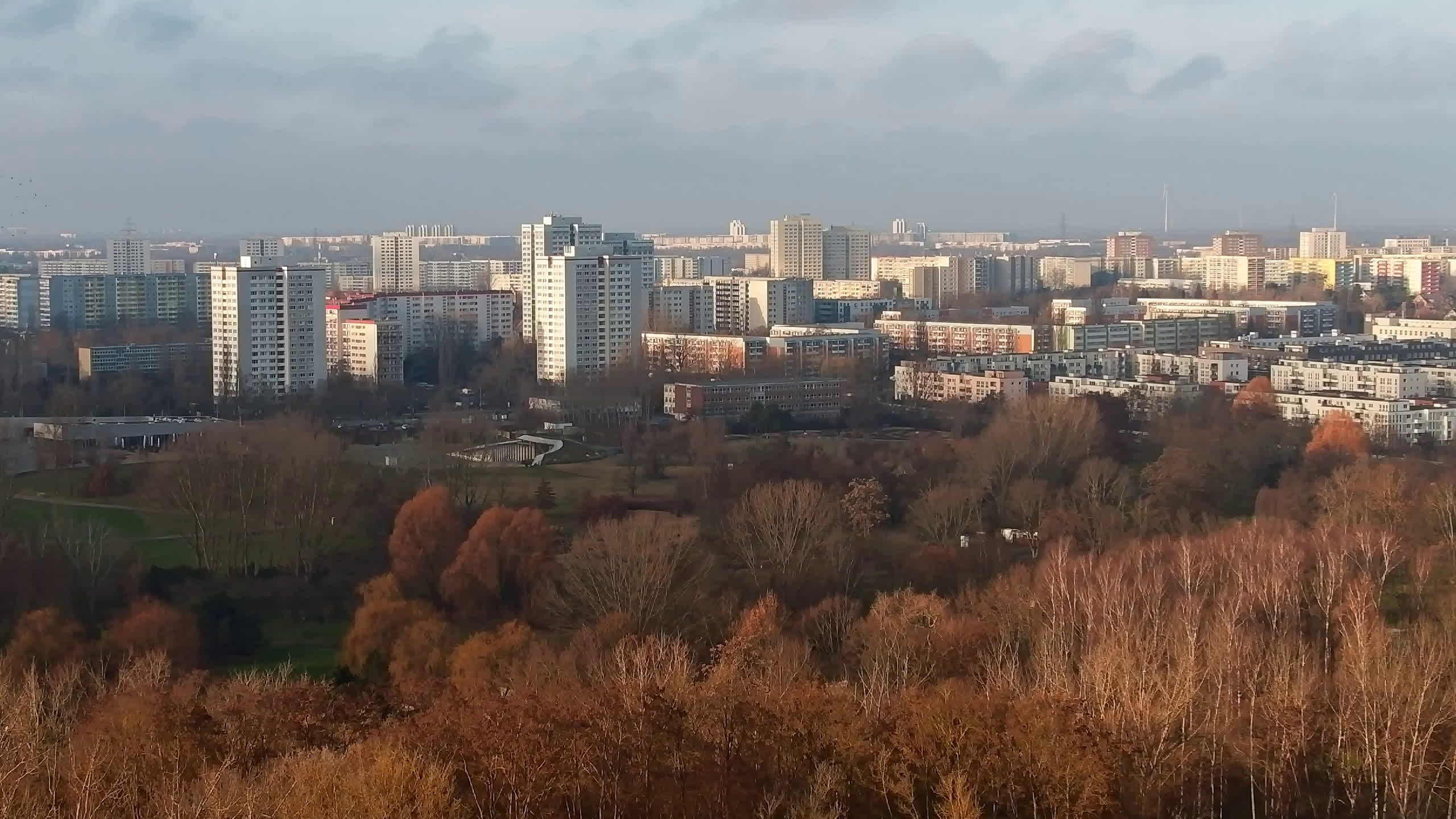 Berlin, Deutschland - 4.7 km von Kreuzberg: Tempelhofer Feld - Ein Blick über das Tempelhofer Feld in Berlin Kreuzberg aus einem gegenüber dem Park gelegenen Bürogebäude.