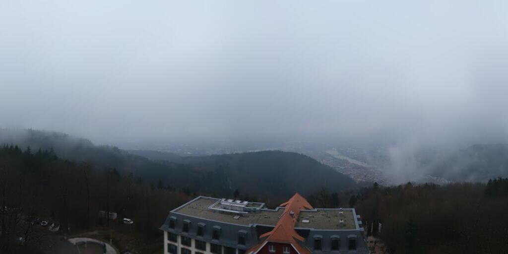 Heidelberg, Deutschland - 6.2 km von Leimen: Altstadt und Schloss - Die Webcam befindet sich am Nordufer des Neckar und zeigt die Altstadt von Heidelberg, das Schloss, die Heiliggeistkirche und Bergbahn.