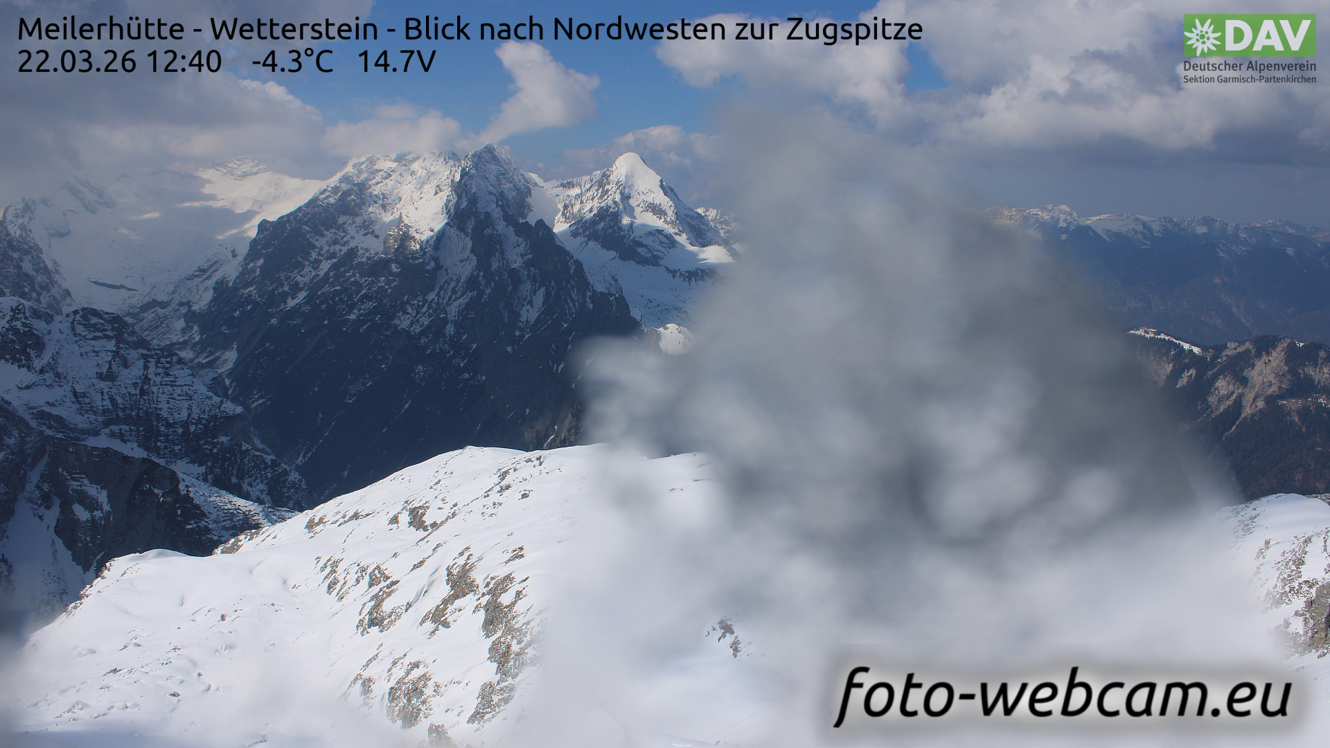 Garmisch-Partenkirchen, Deutschland - 1.3 km von Markt Garmisch-Partenkirchen: HD Foto-Webcam Meilerhütte - Meilerhütte - Wetterstein - Blick nach Nordwesten zur Zugspitze.