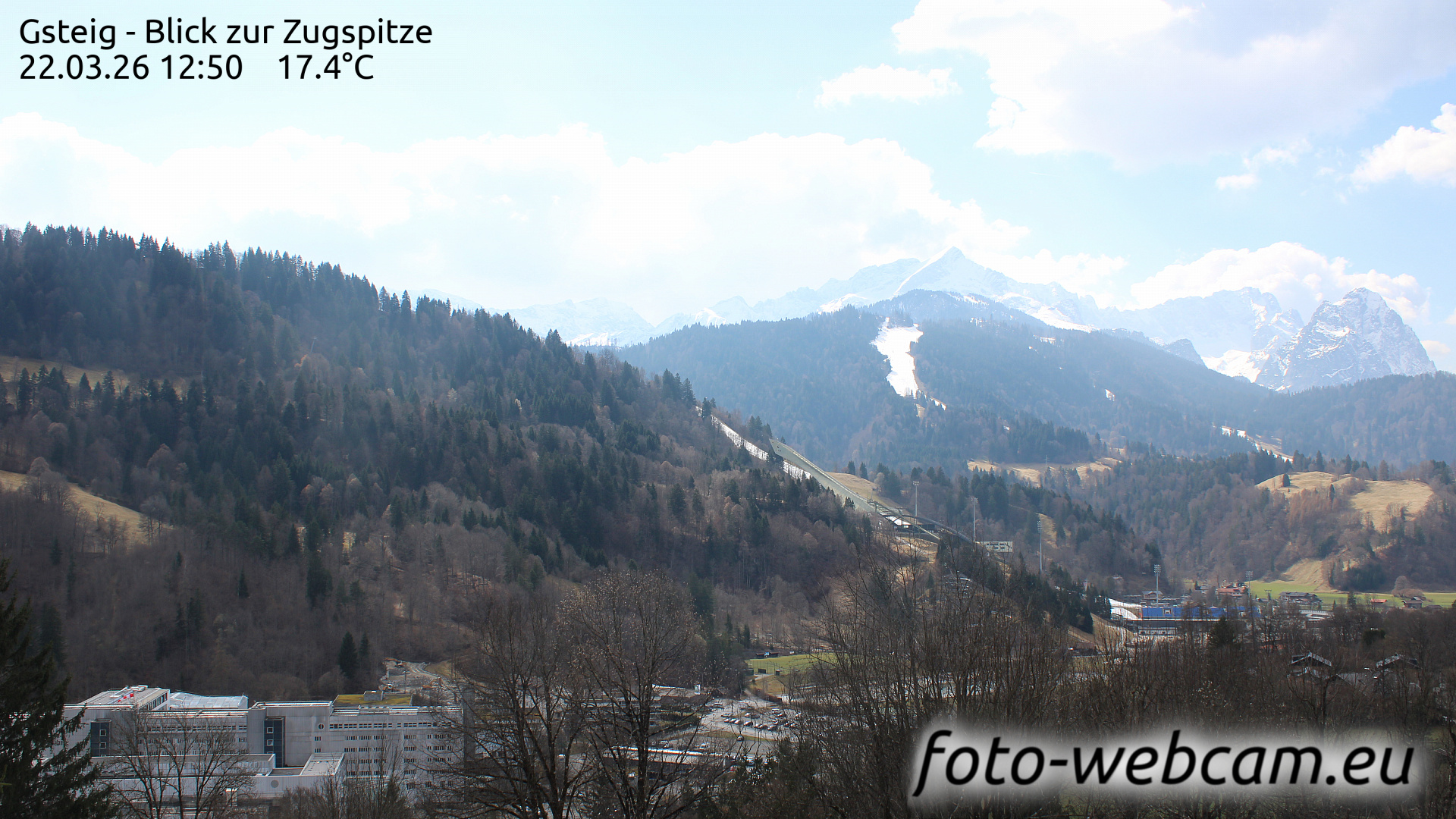 Garmisch-Partenkirchen, Deutschland - 1.3 km von Markt Garmisch-Partenkirchen: HD Foto-Webcam Hausberg - Hausberg - Garmisch-Classic - Blick nach Südwesten.
