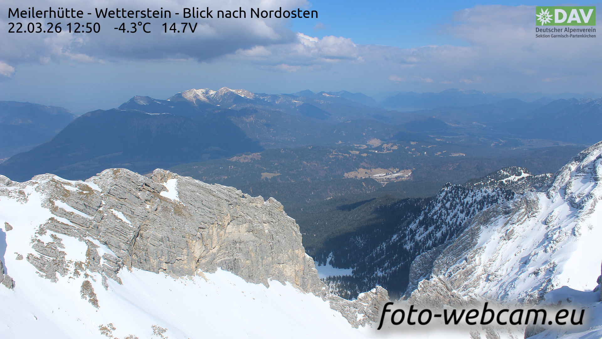 Garmisch-Partenkirchen, Deutschland - 1.3 km von Markt Garmisch-Partenkirchen: HD Foto-Webcam Meilerhütte Nord - Meilerhütte - Wetterstein - Blick nach Nordosten.