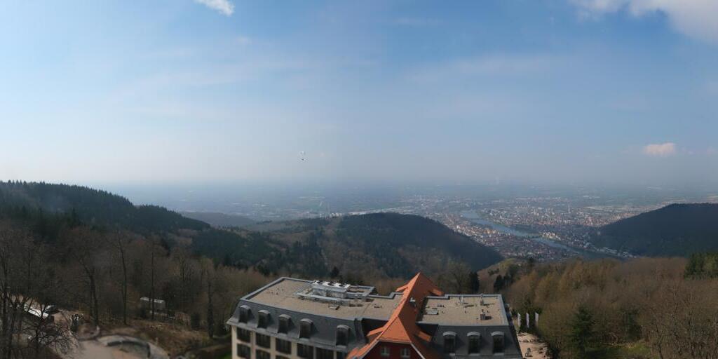 Heidelberg, Deutschland - 30.4 km von Menzingen: Altstadt und Schloss - Die Webcam befindet sich am Nordufer des Neckar und zeigt die Altstadt von Heidelberg, das Schloss, die Heiliggeistkirche und Bergbahn.