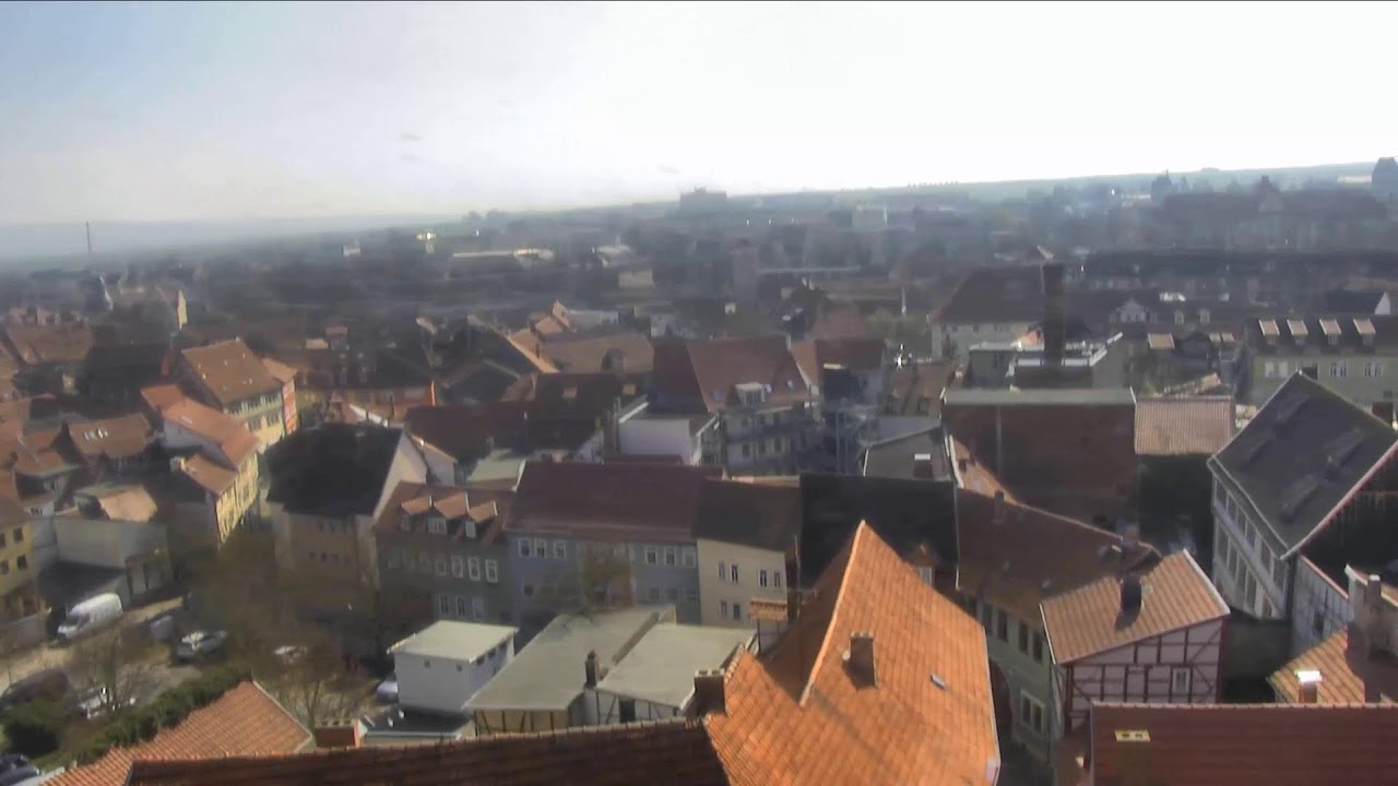 Bad Sooden-Allendorf, Deutschland - 30.8 km von Oberorschel: Bad Sooden-Allendorf Kurviertel - Die hr-Wetterkamera befindet sich auf dem Dachstuhl der St.-Marien-Kirche mit Blick auf das 'Werratal Kultur und Kongress Zentrum' im Kurviertel. Etwas links von der Bildmitte ist das 140 Meter lange Gradierwerk aus dem Jahr 1638 zu erkennen. Blickrichtung: Südost.