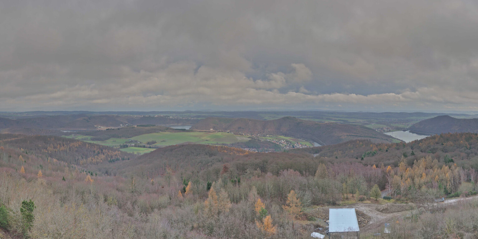 Bad Sooden-Allendorf, Deutschland - 46.6 km von Remsfeld: Bad Sooden-Allendorf Kurviertel - Die hr-Wetterkamera befindet sich auf dem Dachstuhl der St.-Marien-Kirche mit Blick auf das 'Werratal Kultur und Kongress Zentrum' im Kurviertel. Etwas links von der Bildmitte ist das 140 Meter lange Gradierwerk aus dem Jahr 1638 zu erkennen. Blickrichtung: Südost.