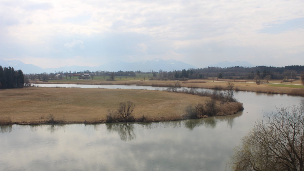 Altenmarkt a. d. Alz, Deutschland - 36.3 km von Sterneck: Auberg-CAM - Blick über das südostbayrische Voralpenland (rechts auf dem Berg - Stiftskirche Baumburg).