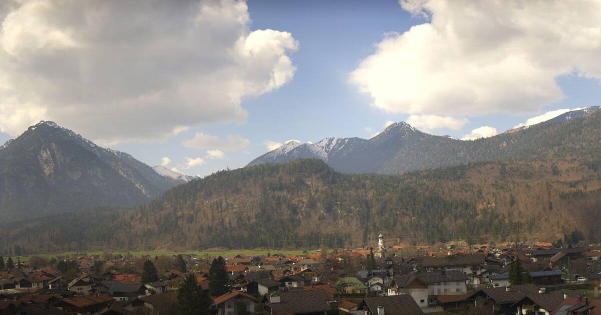 Garmisch-Partenkirchen, Deutschland - 14.4 km von Unterammergau: Blick vom Wank-Haus - Panoramablick vom Wank-Haus (1780 m) auf Garmisch-Partenkirchen und Zugspitzmassiv.
