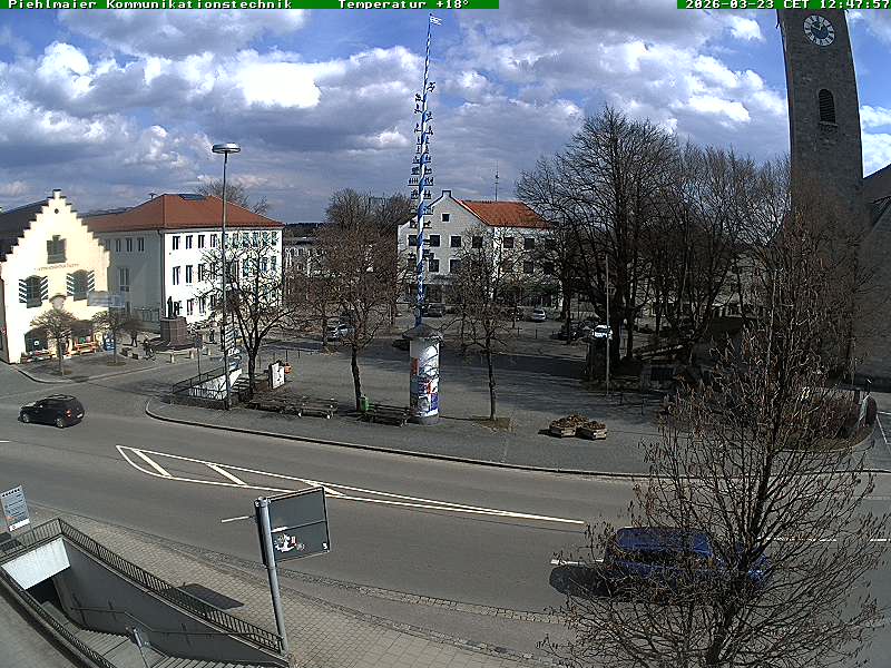 Kreuth, Deutschland - 15.4 km von Wall: Kreuth am Tegernsee - Live-Bild vom heilklimatischen Kurort Kreuth. Im Vordergrund ein Teil des Warmfreibades, rechts Kirche St. Leonhard, im Hintergrund Leonhardstein (1450 m).