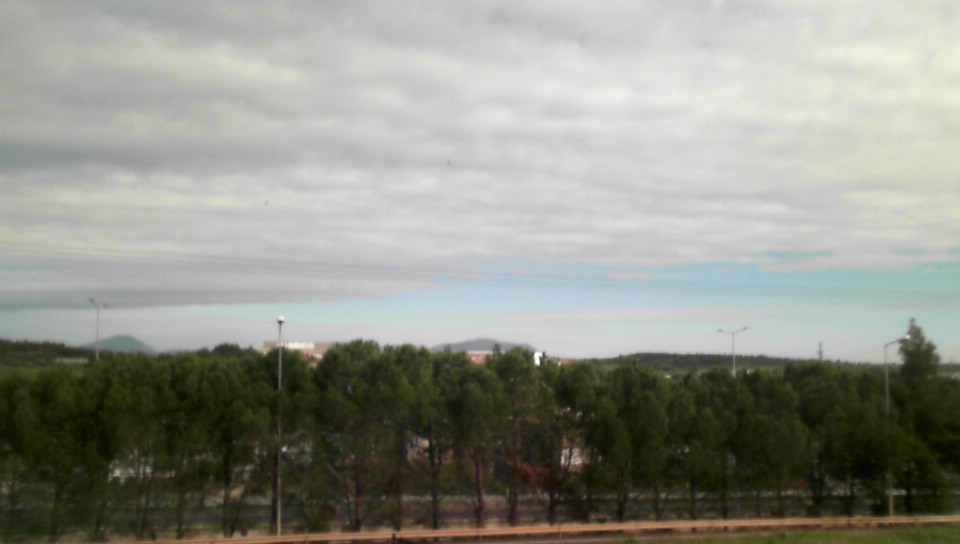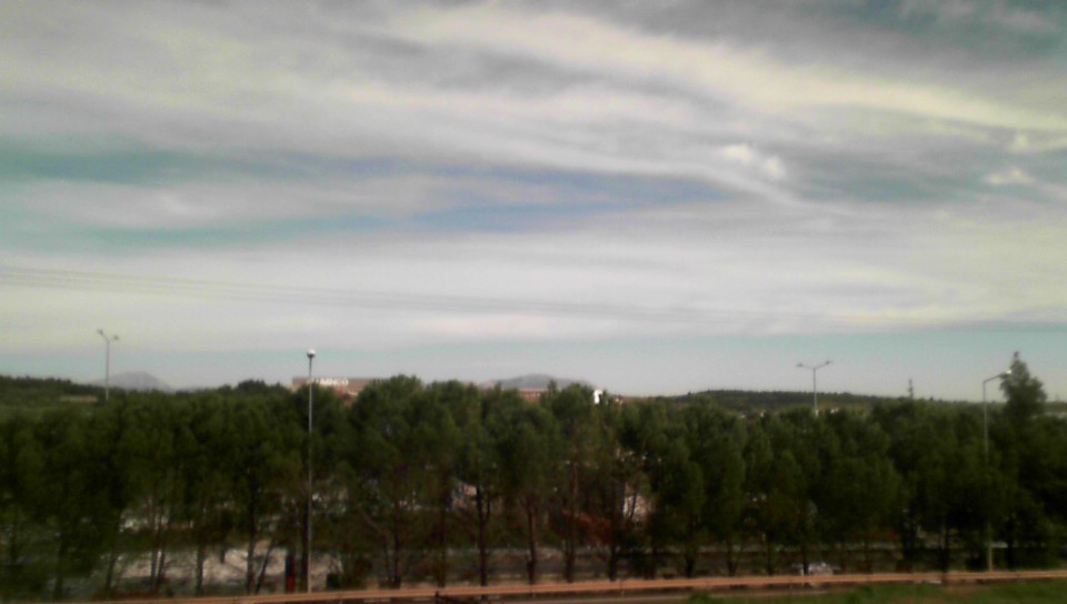 - Ein Blick in den Himmel über Volos in Richtung Osten, Berg Pelion (1624m).