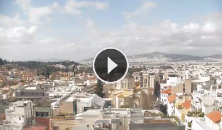 Athens, Griechenland - 18.9 km von Kato Varibopi: Penteli Mountain - Zu sehen ist die Paiania-Region und der Himmel über den südöstlichen Vororten von Athen. Nachts sieht man die Flugzeuge vom und zum Eleftherios Venizelos Airport.
