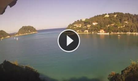 Tsoukaládhes (Lefkada), Griechenland - 69 km von Lepadion: Thea Thalatta Luxury Villas - Blick von den Thea Thalatta Luxury Villas: Mit dieser Live-Webcam können Sie einen Blick auf Lefkada-Stadt, den Agios Ioannis Strand, den Flughafen, den Taol Ammoglossa Kastro Strand, die Lefkada-Brücke und die Burg der Insel werfen.