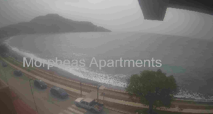 Plakias (Crete), Griechenland - 48.1 km von Sinoikismos Khalepa: Strand und Hafen - Zwei Kameras mit Blick auf Strand und Hafen von den Hotels Livikon und Morpheas Apartments.