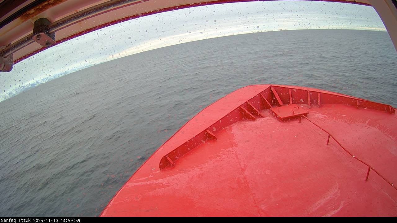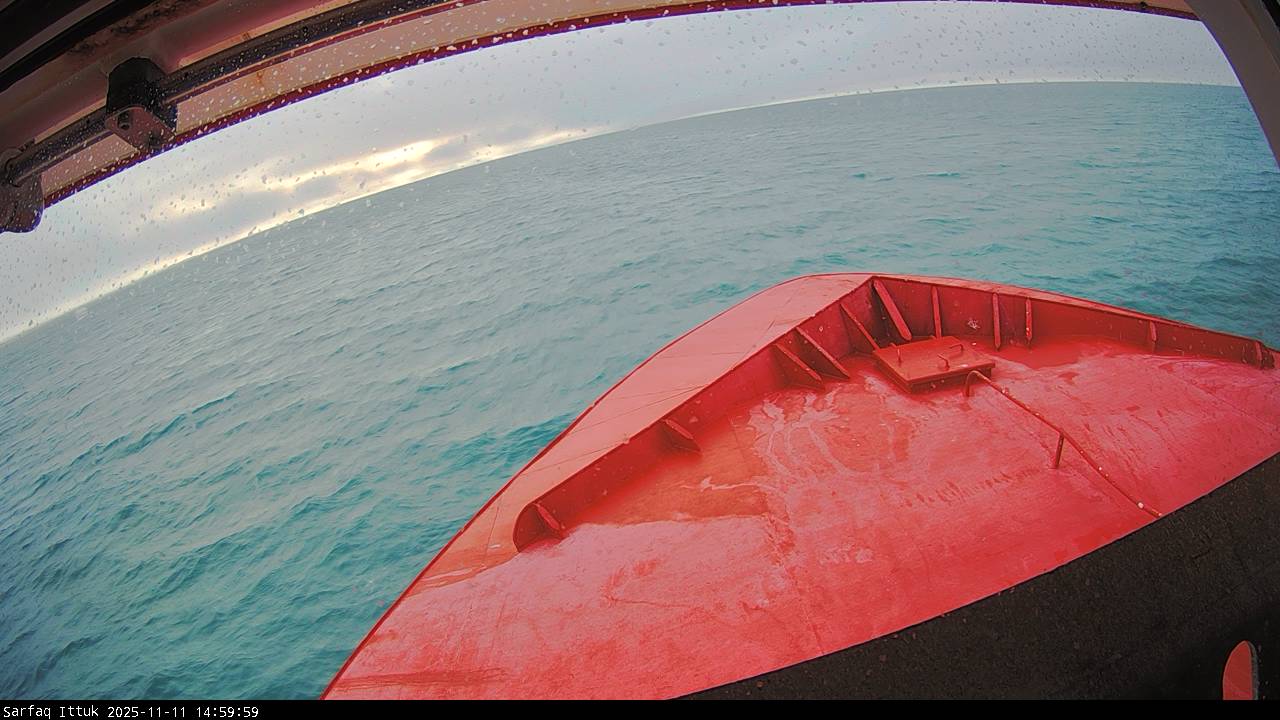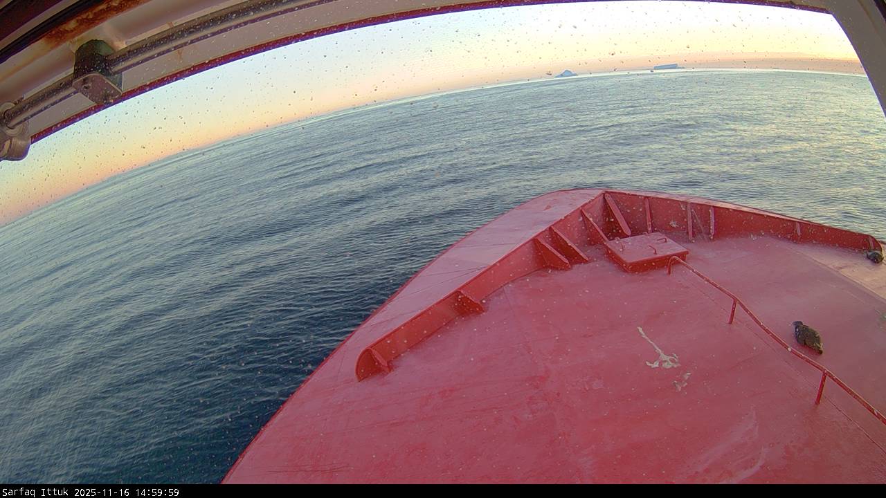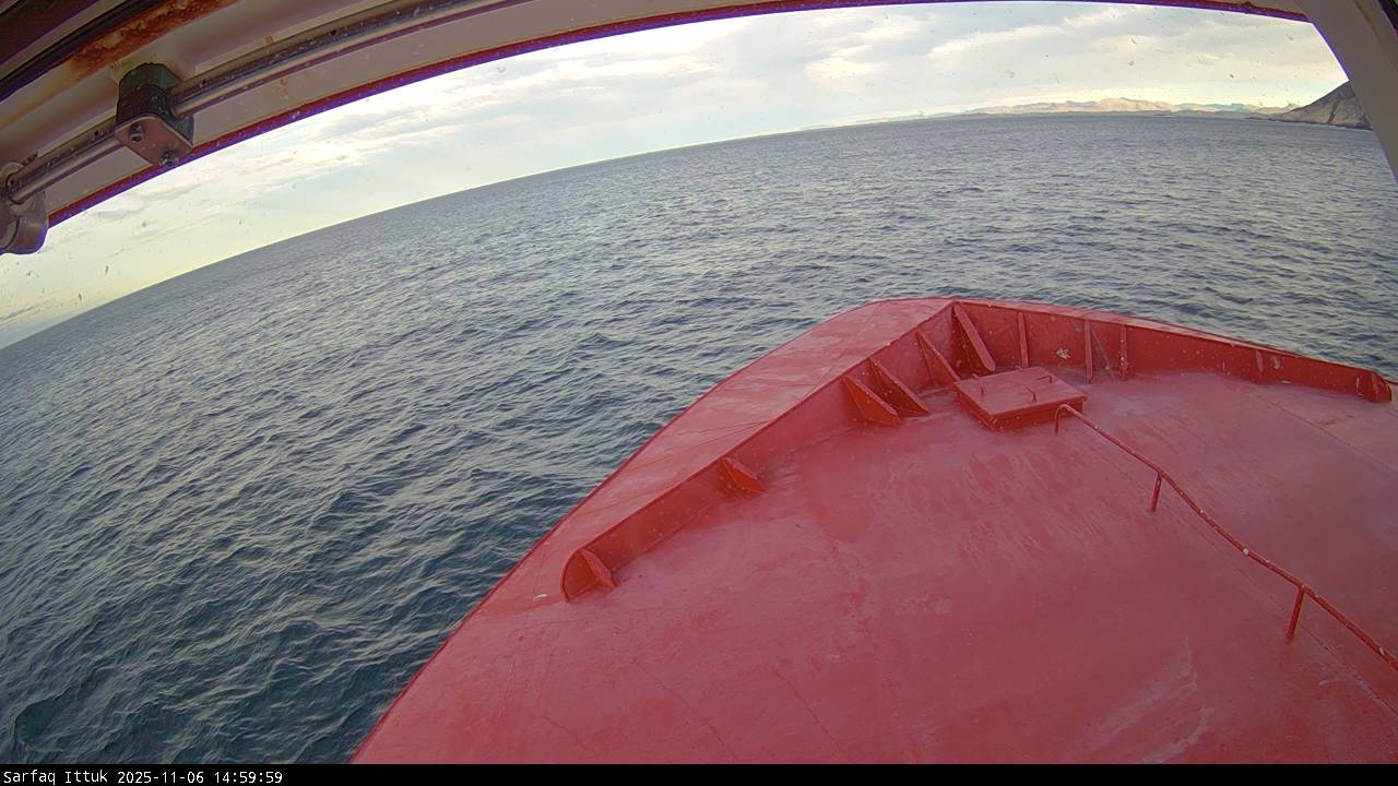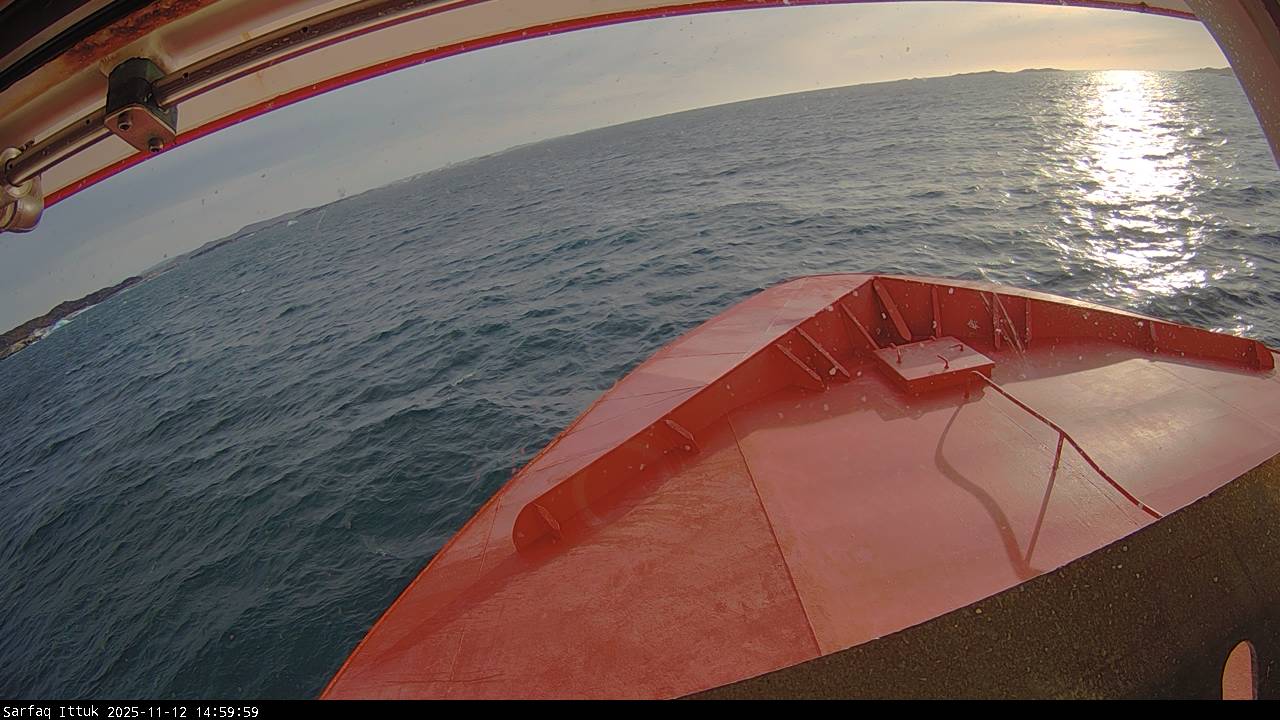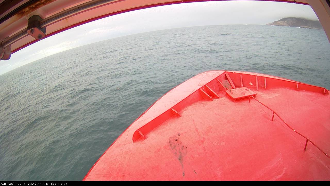 Sarfaq Ittuk, Royal Arctic Line - 249.8 km von Aussivik: Blick über den Bug