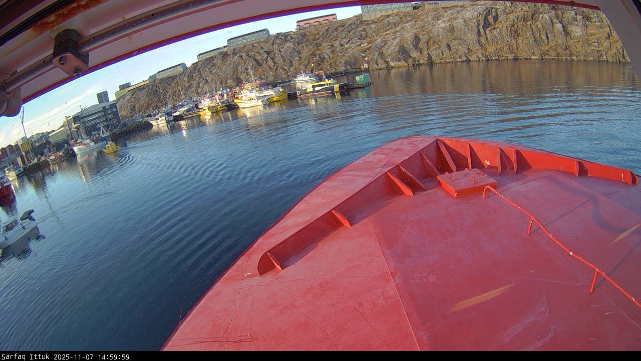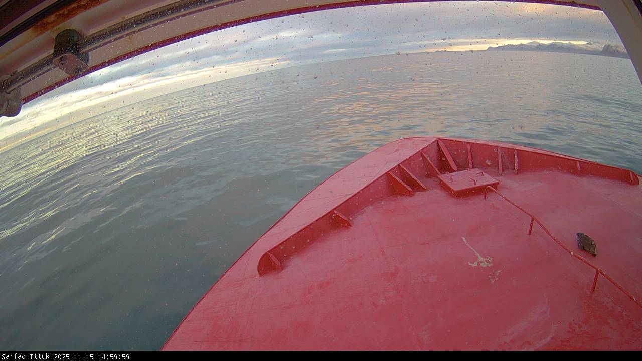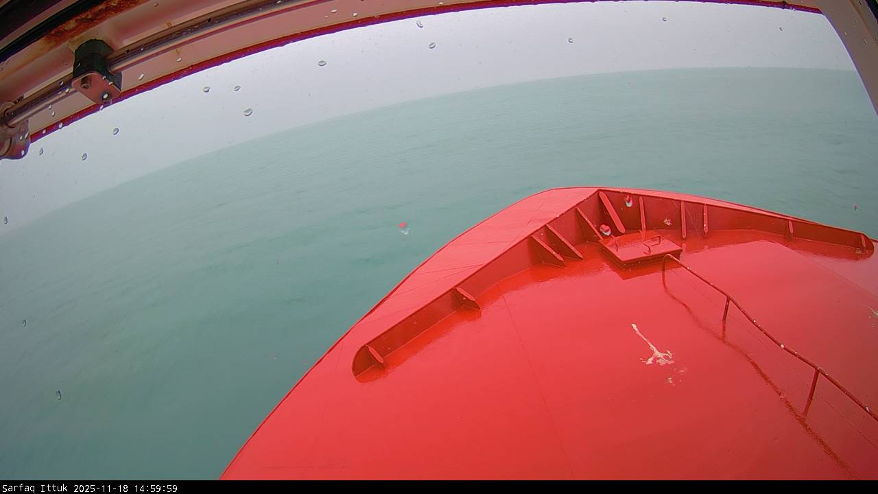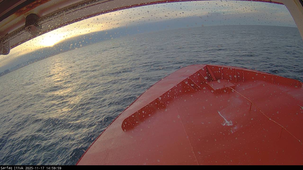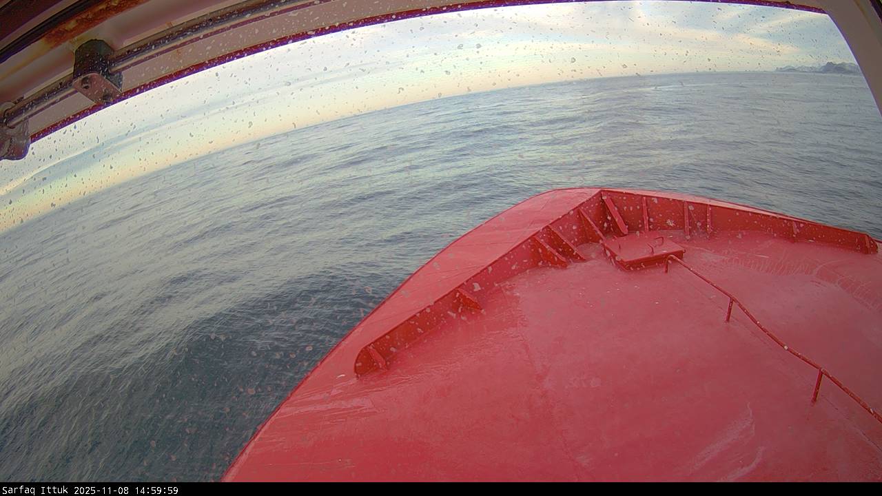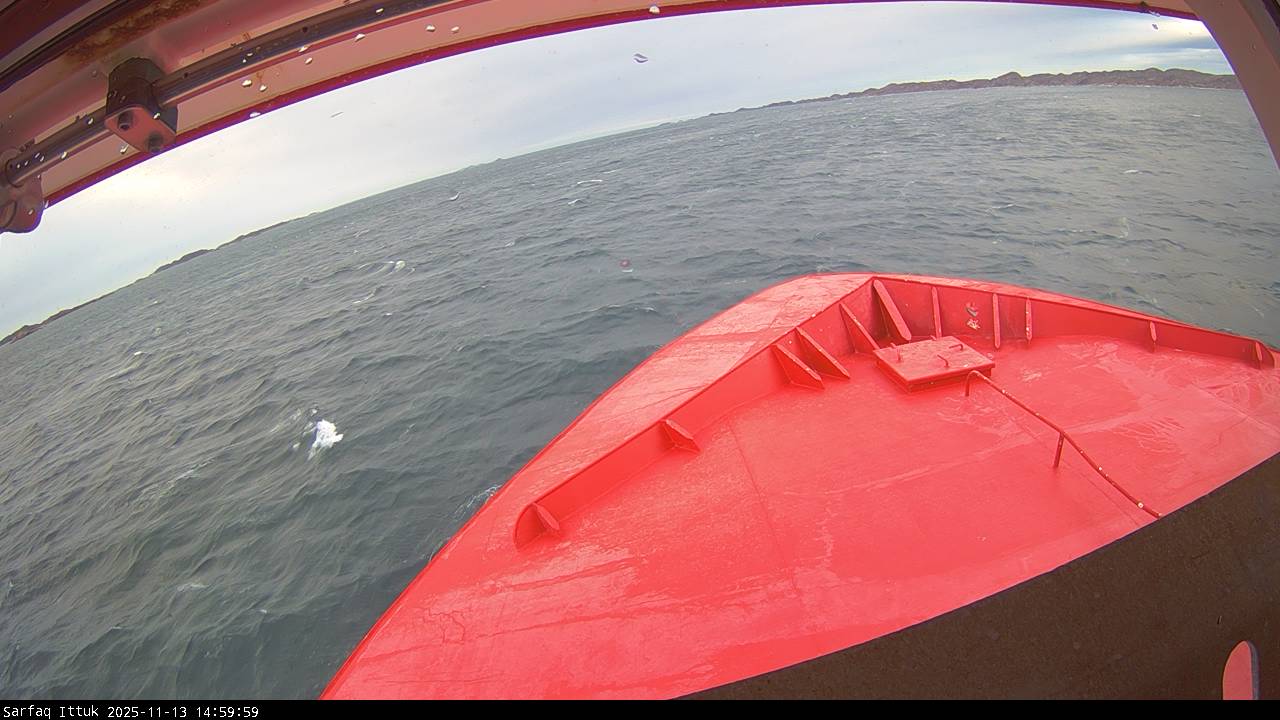 Sarfaq Ittuk, Royal Arctic Line - 249.8 km von Aussivik: Blick über den Bug