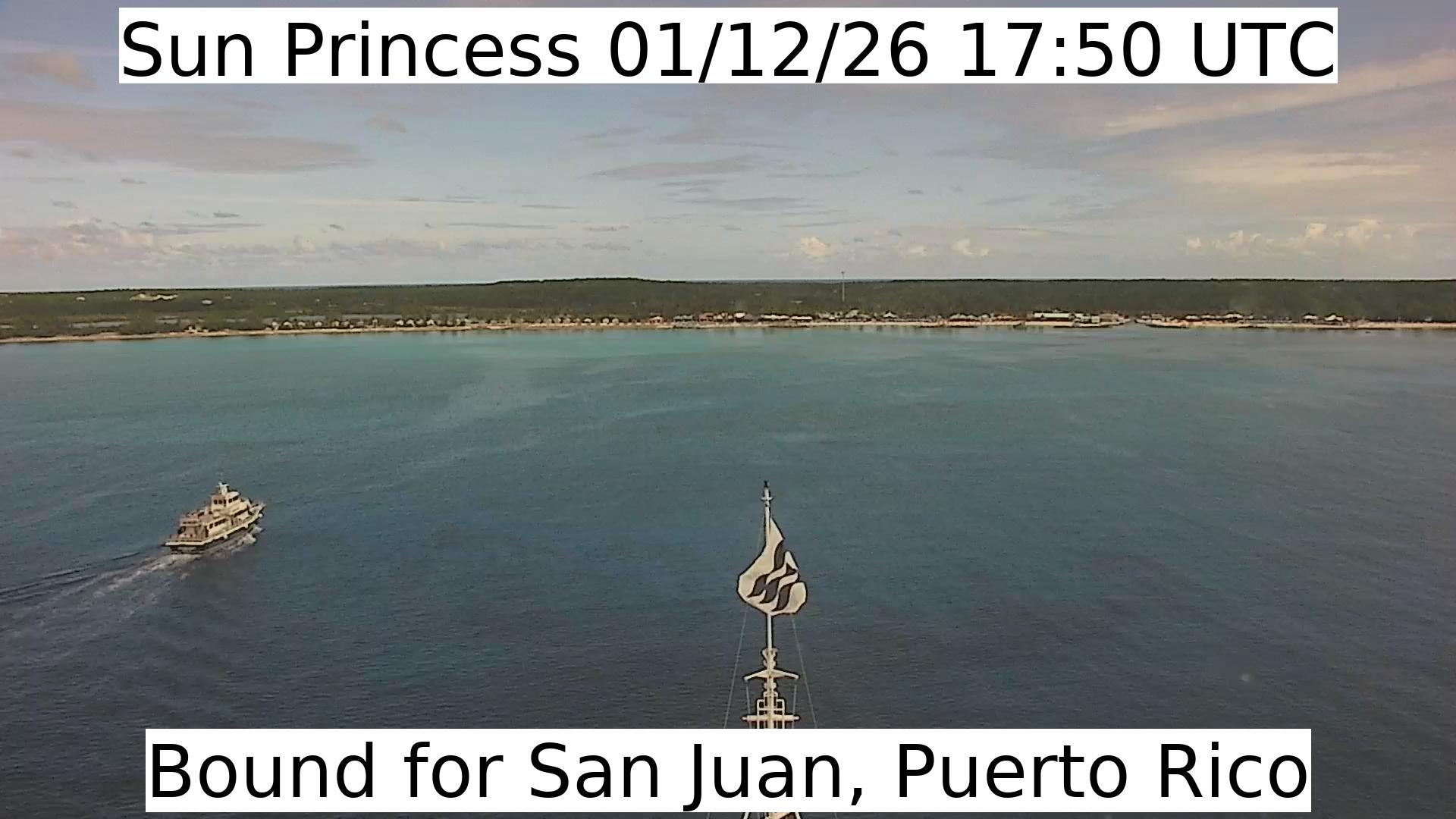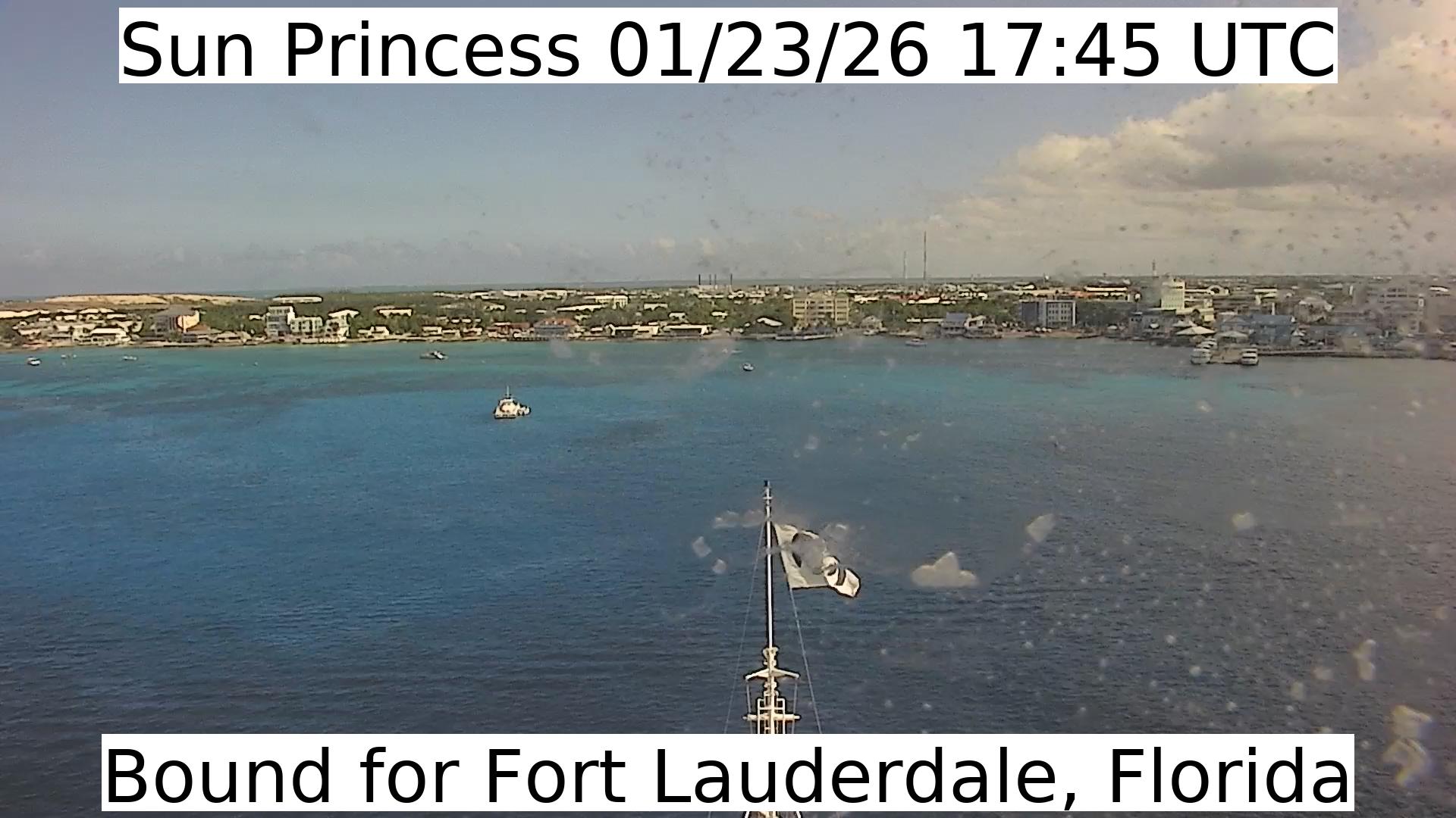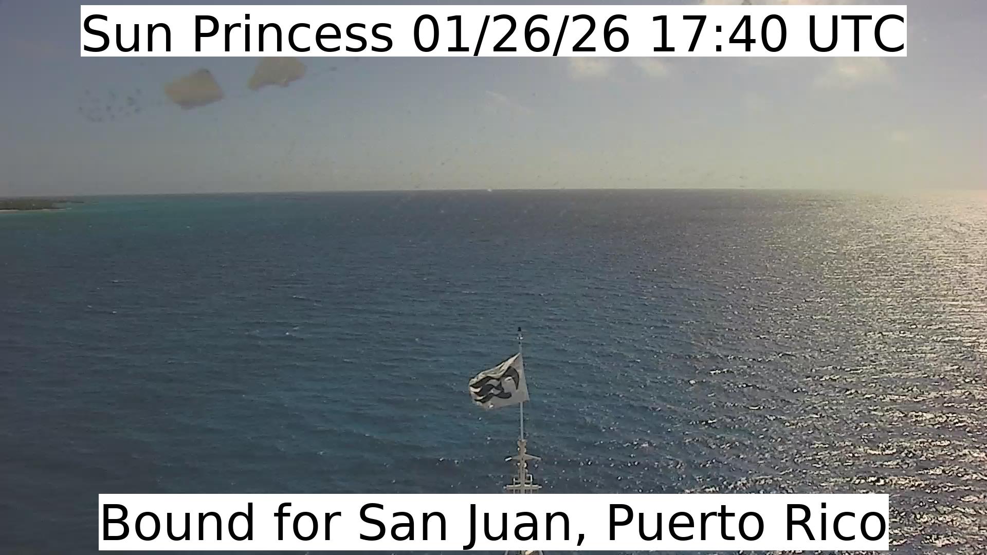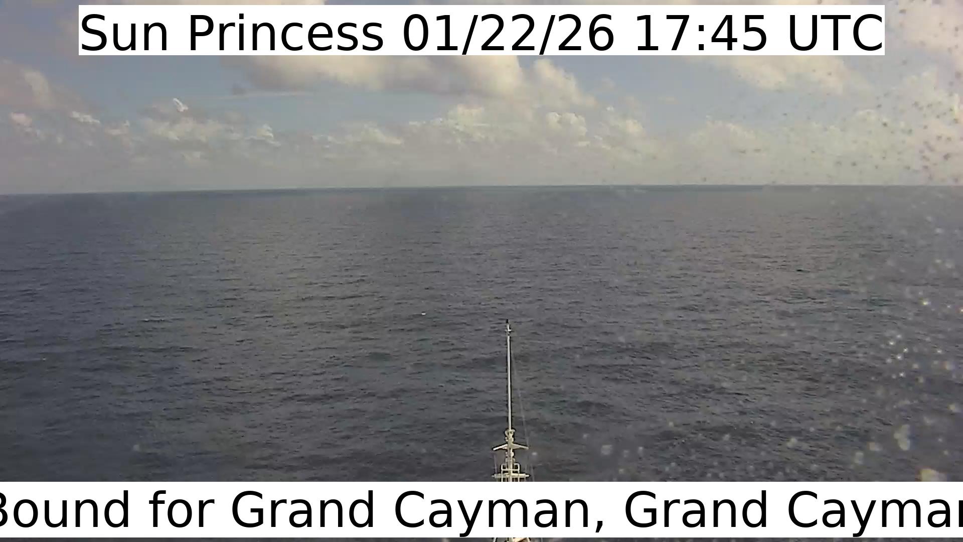 Norwegian Encore, Norwegian Cruise Line - 124.7 km von Atascosa: Live auf See - Werfen Sie einen Blick von der Brücke des Kreuzfahrtschiffes Norwegian Encore auf die See.