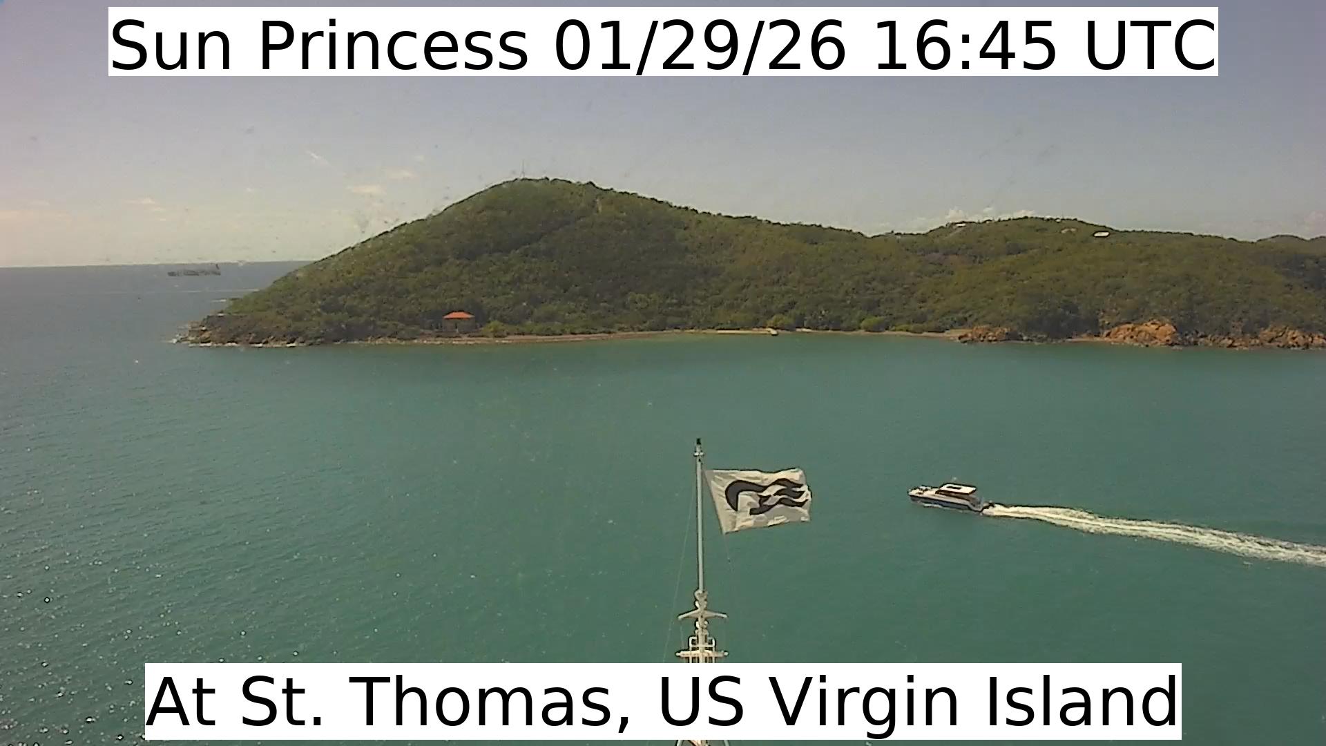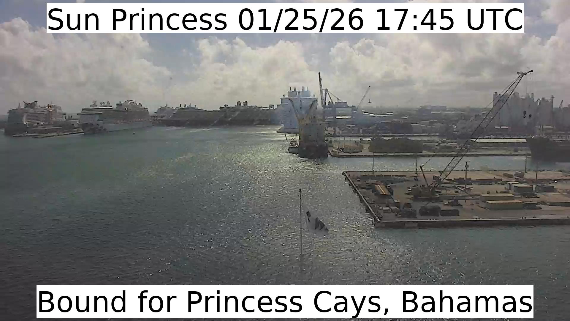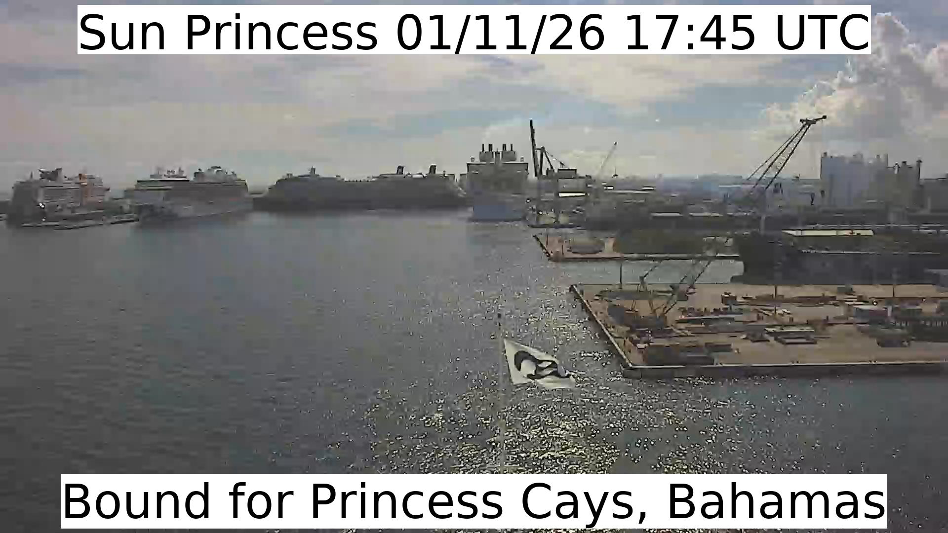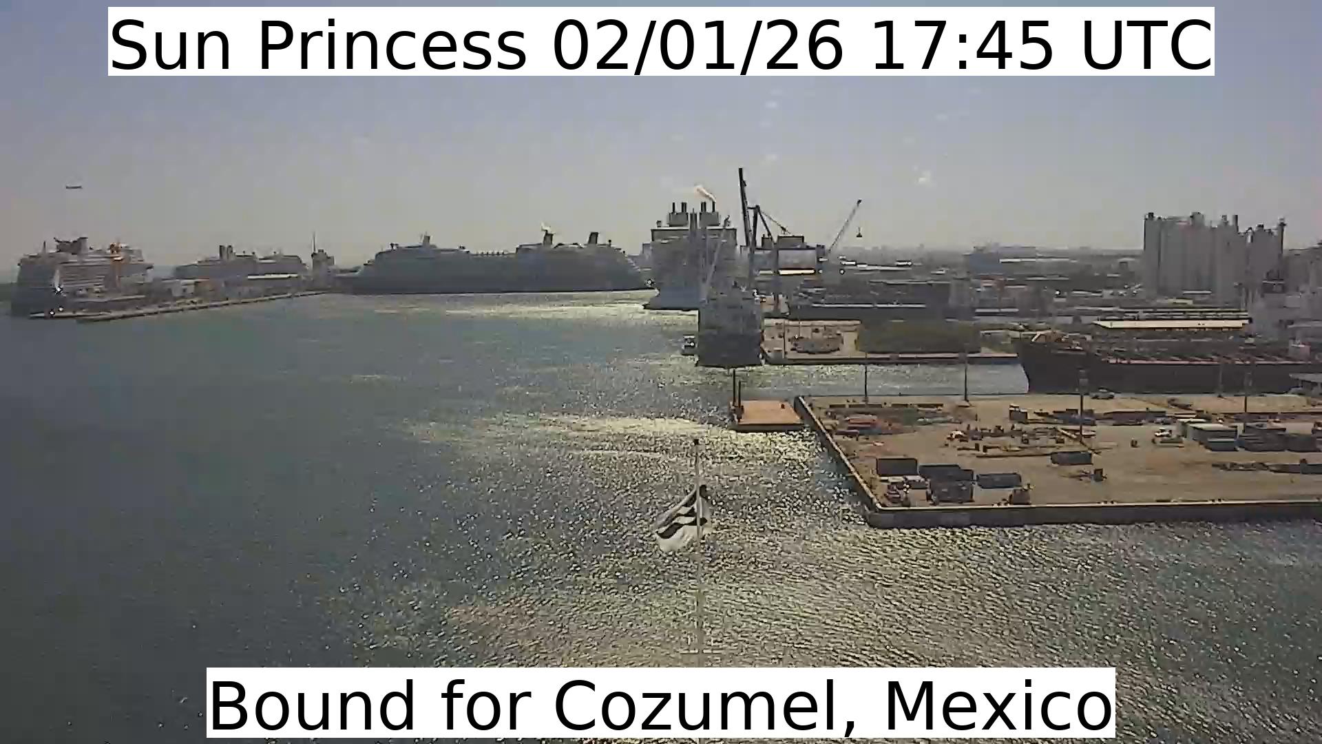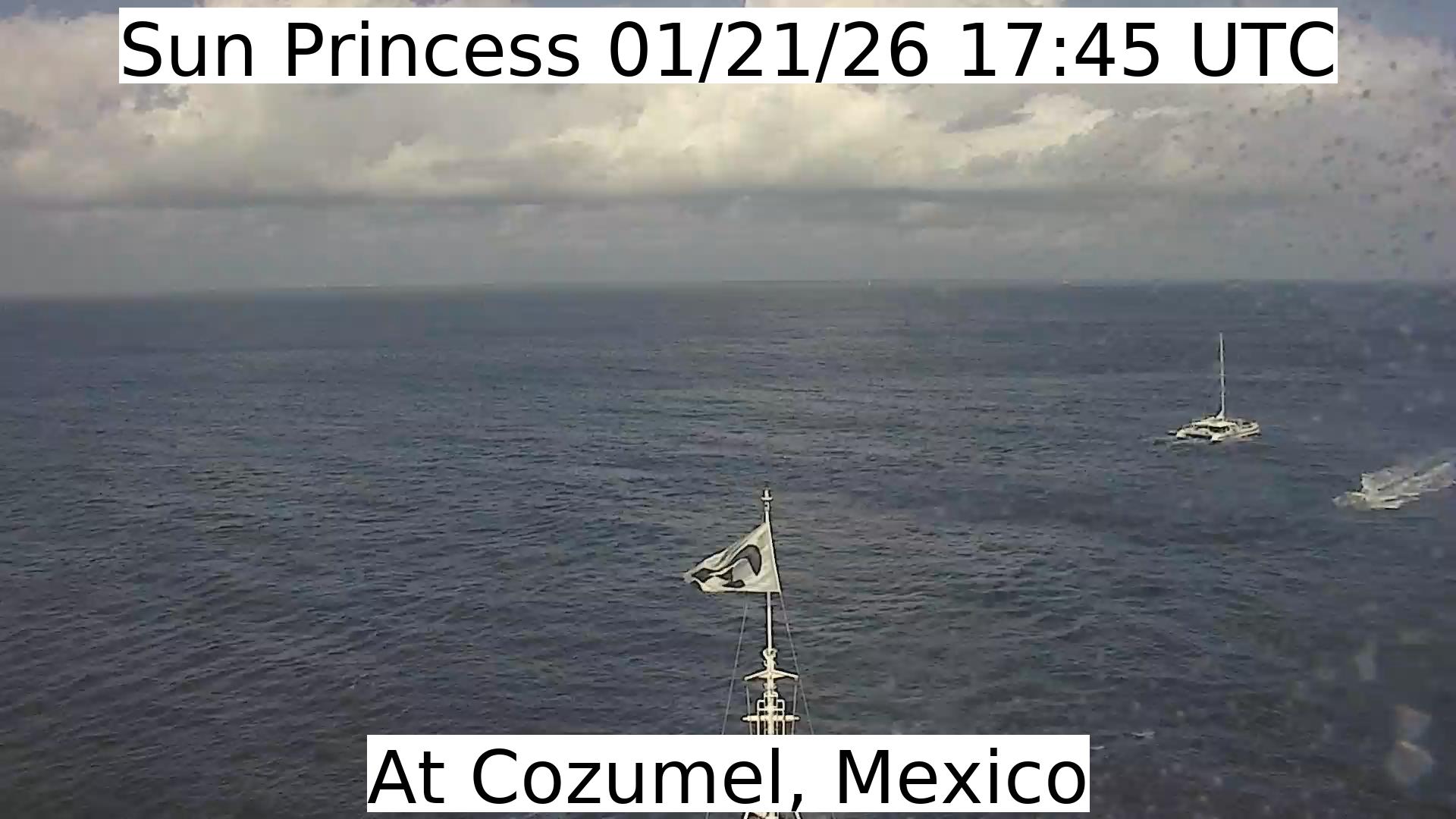 Norwegian Encore, Norwegian Cruise Line - 124.7 km von Atascosa: Live auf See - Werfen Sie einen Blick von der Brücke des Kreuzfahrtschiffes Norwegian Encore auf die See.