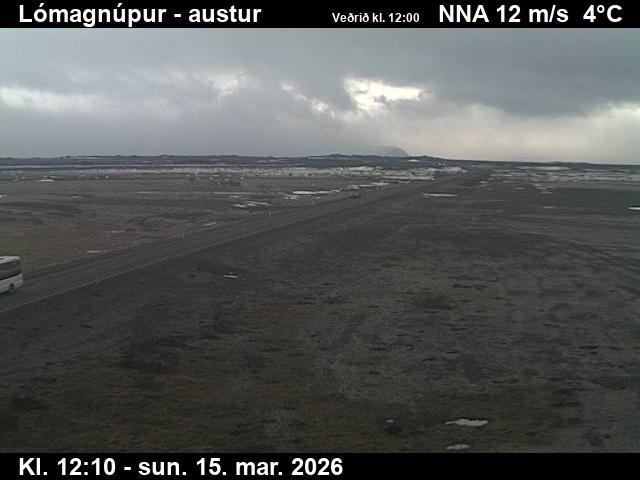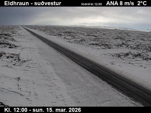 Kirkjubæjarklaustur, Island - 24.3 km von Grafarkirkja: Hringvegur Richtung Nordosten (Eldhraun Lavafeld) - Ein Blick auf die aktuelle Strassen- und Wettersituation.