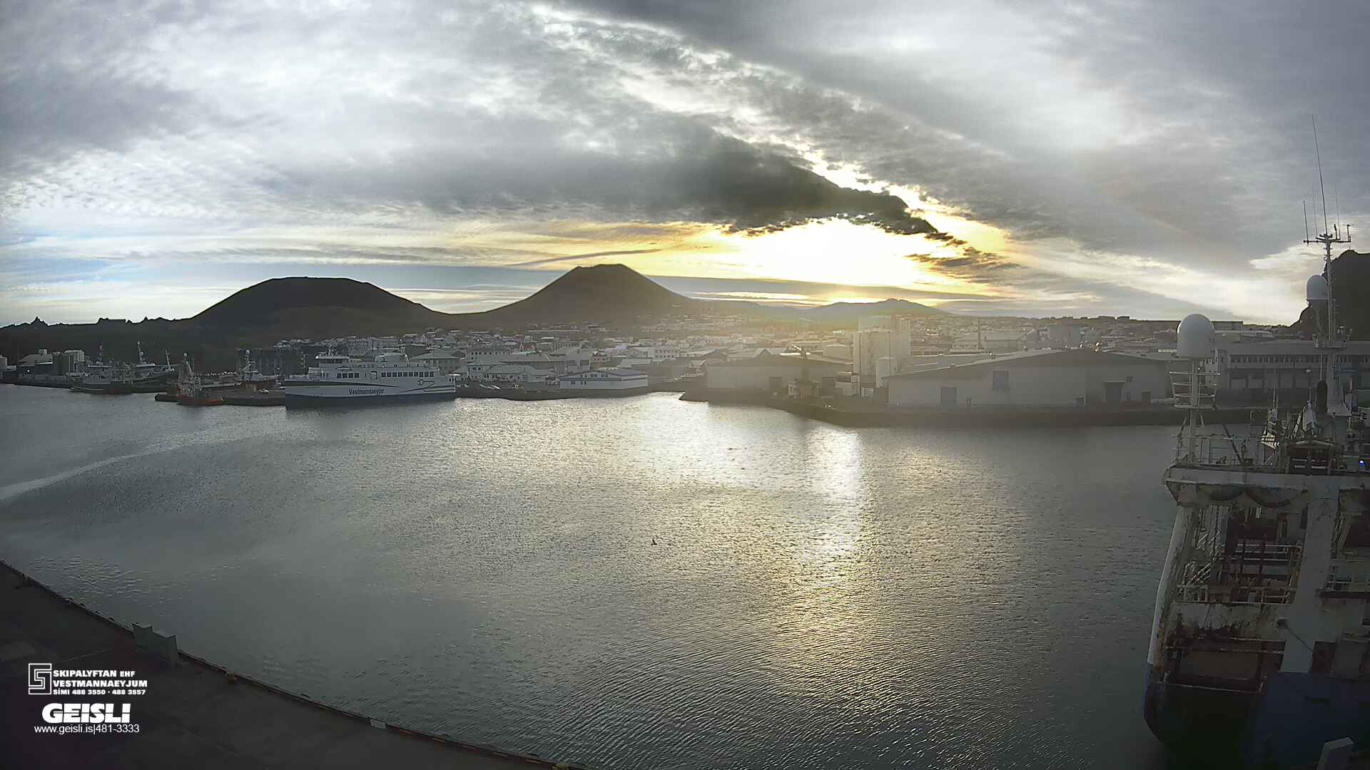 Vestmannaeyjar, Island - 21.5 km von Holmabair: Blick über den Hafen