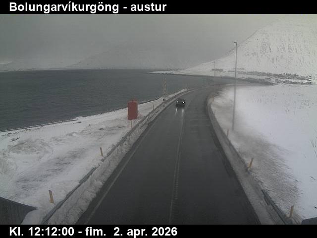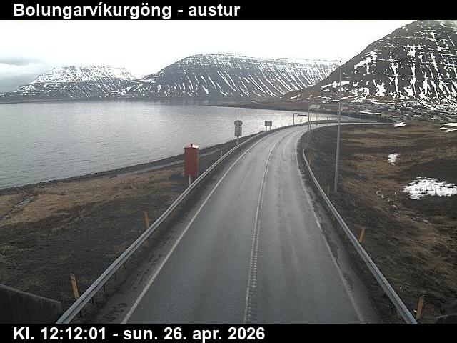 Tungudalur, Island - 25.6 km von Tingeri: Route 60 (Breiðadals- og Botnsheiðargöng) Richtung Norden - Ein Blick auf die aktuelle Strassen- und Wettersituation.