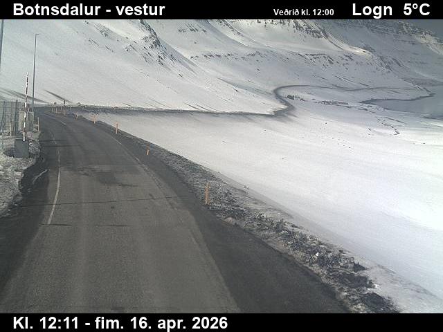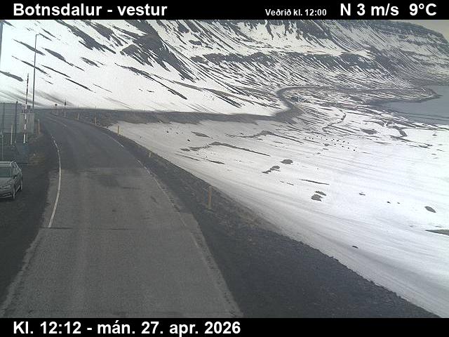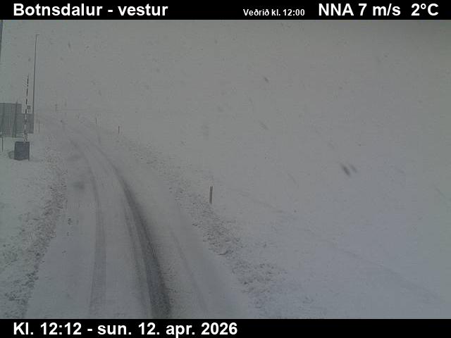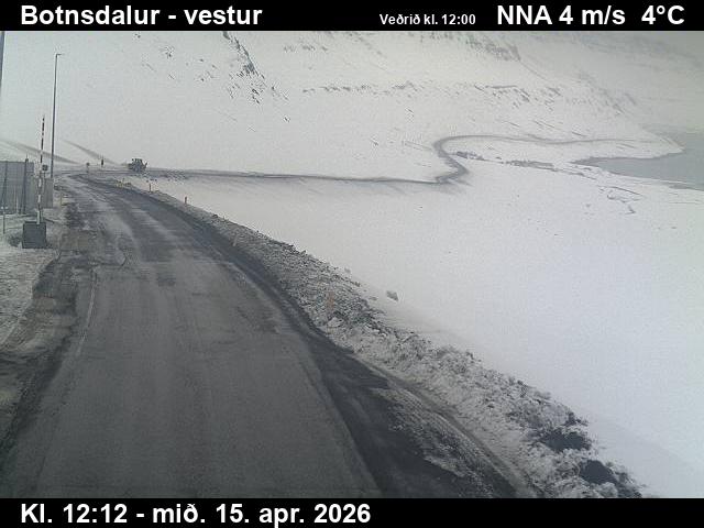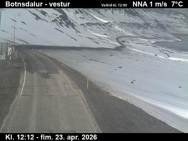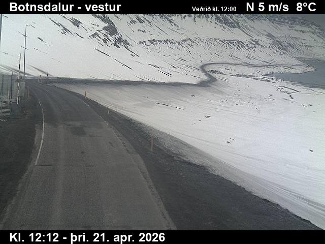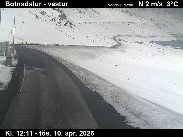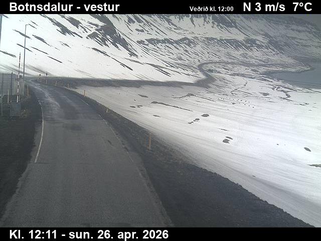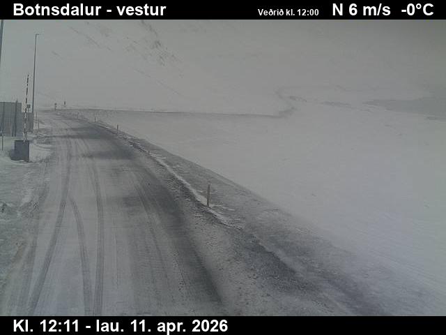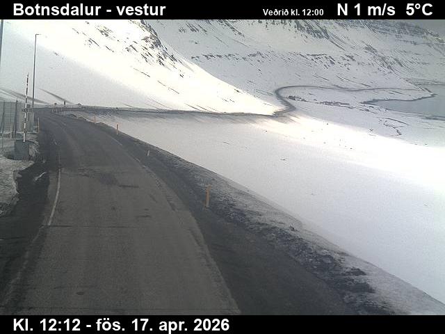 Botnsdalur, Island - 24.3 km von Tingeri: Route 65 (Breiðadals- og Botnsheiðargöng) Richtung Westen - Ein Blick auf die aktuelle Strassen- und Wettersituation.