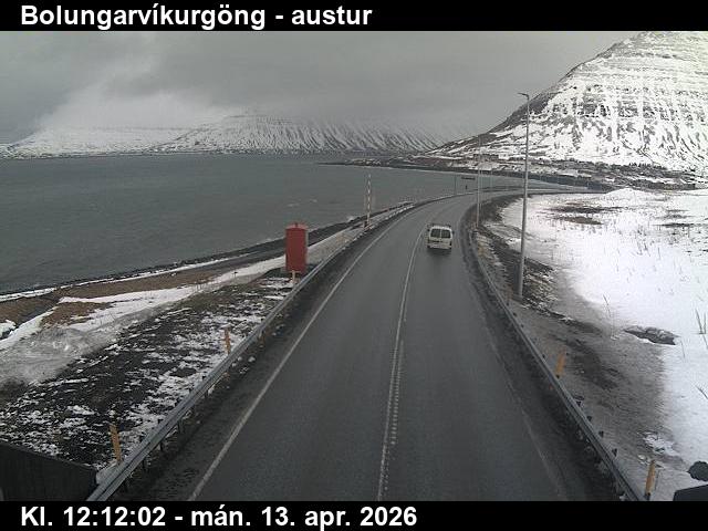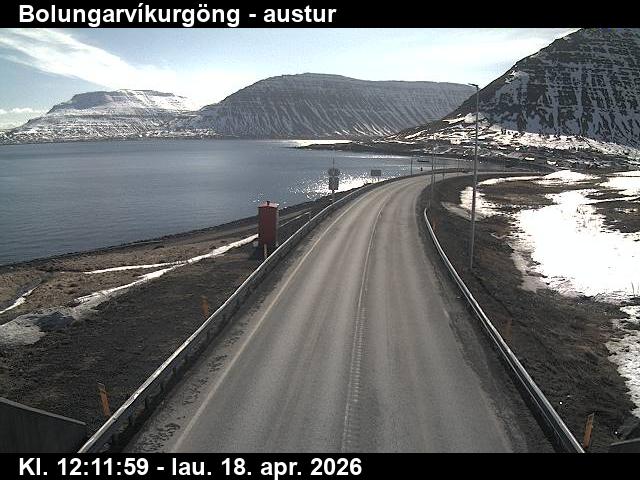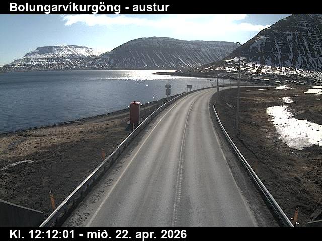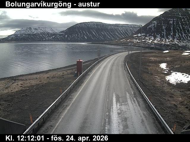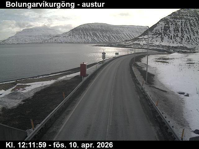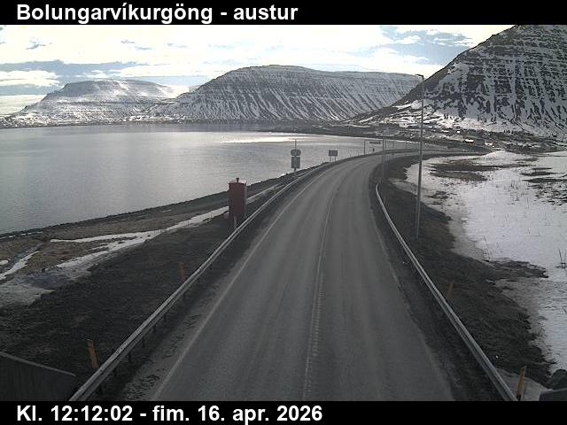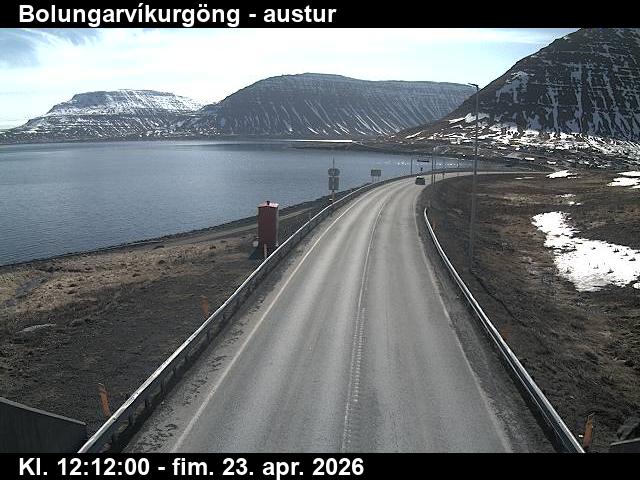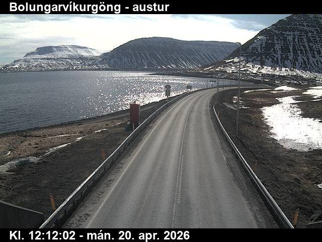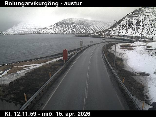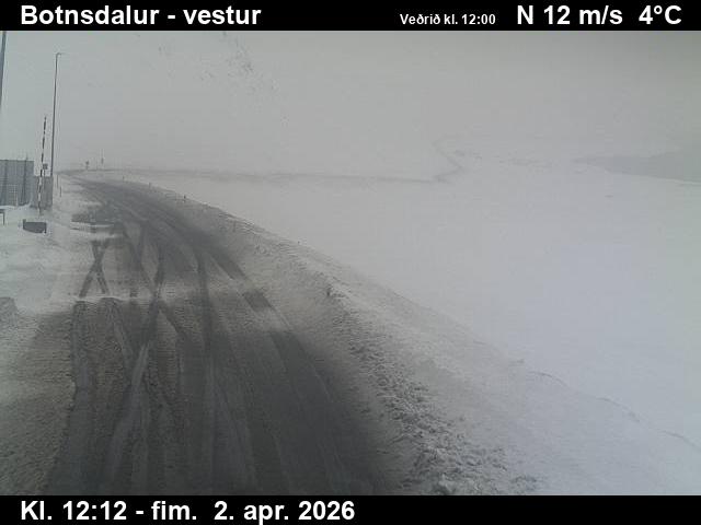 Botnsdalur, Island - 24.3 km von Tingeri: Route 65 (Breiðadals- og Botnsheiðargöng) Richtung Westen - Ein Blick auf die aktuelle Strassen- und Wettersituation.