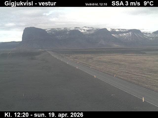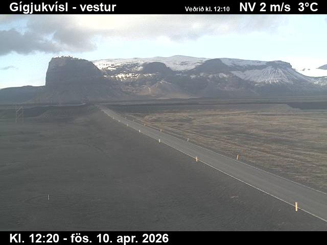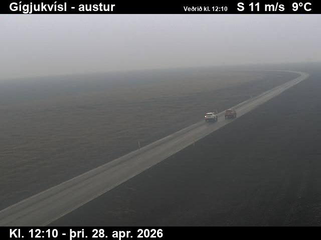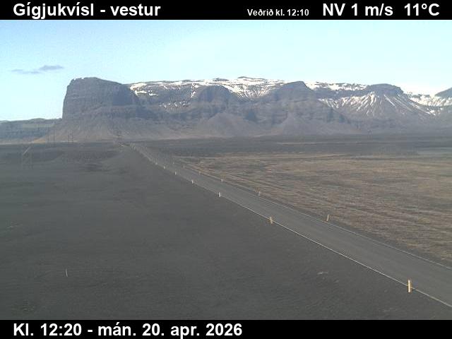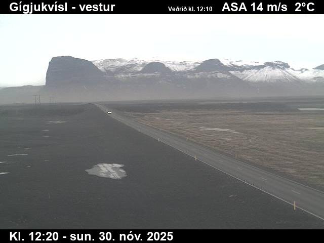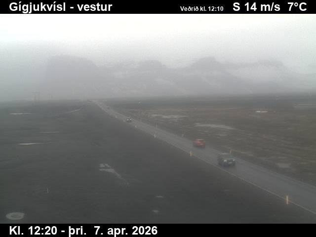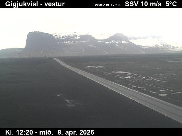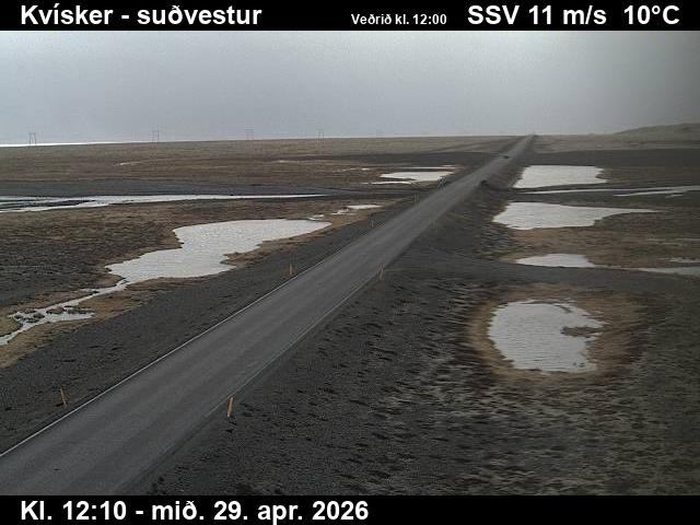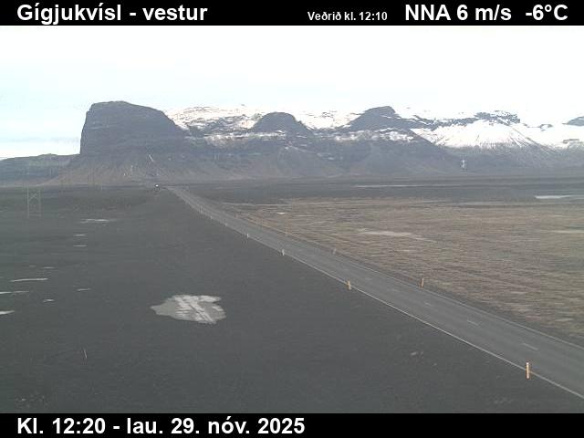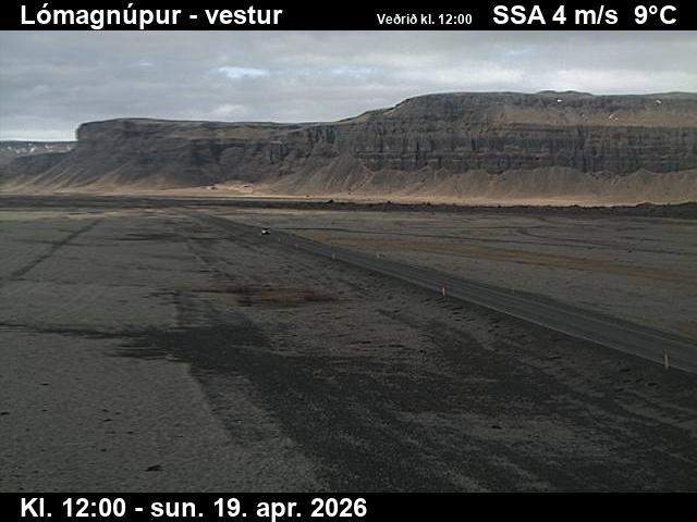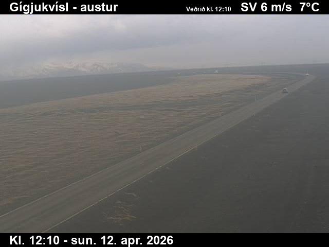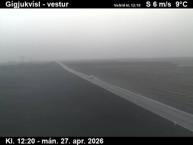 Kirkjubæjarklaustur, Island - 6 km von Trestbakki: Hringvegur Richtung Südwesten (Eldhraun Lavafeld) - Ein Blick auf die aktuelle Strassen- und Wettersituation.