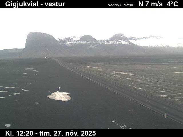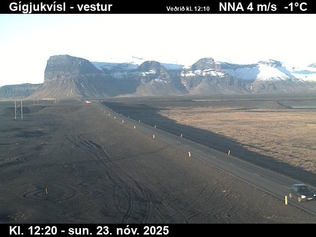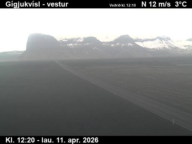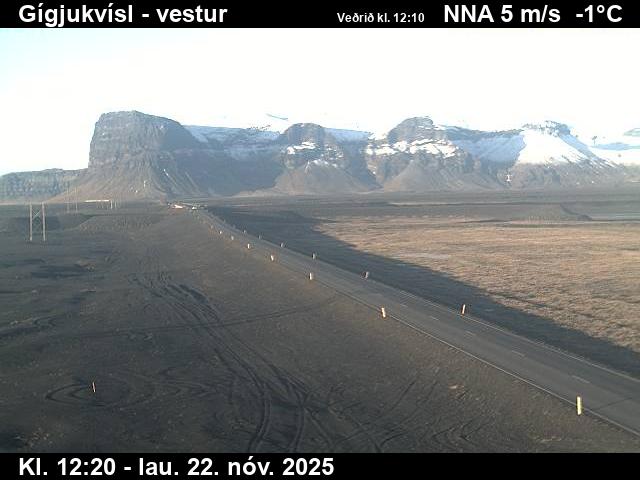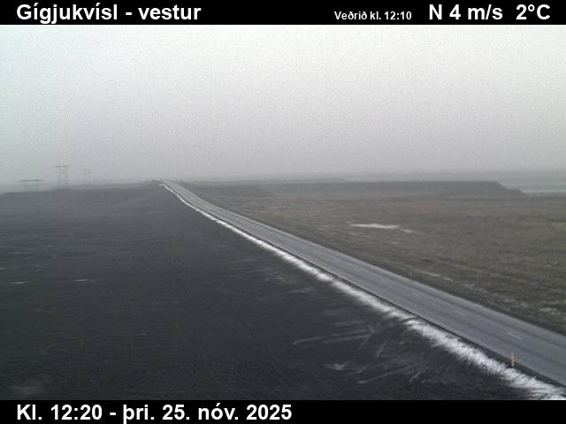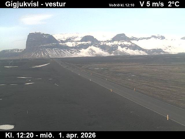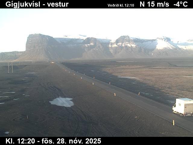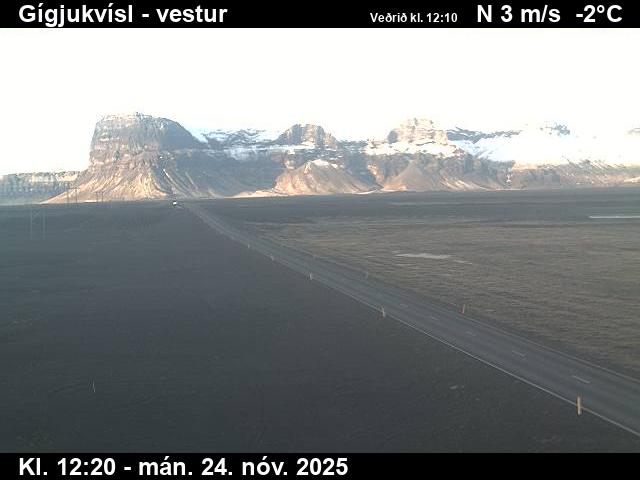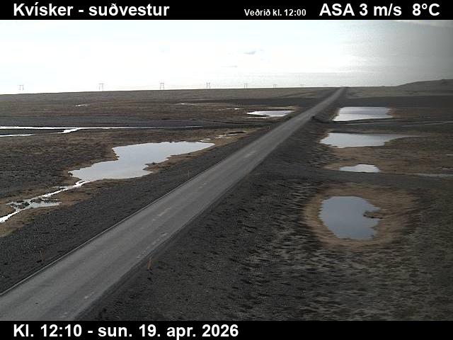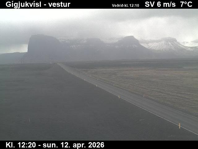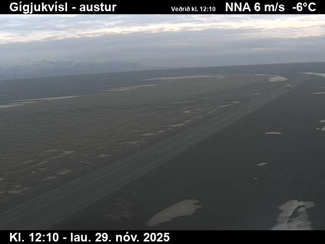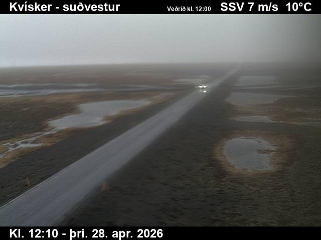 Kirkjubæjarklaustur, Island - 6 km von Trestbakki: Hringvegur Richtung Südwesten (Eldhraun Lavafeld) - Ein Blick auf die aktuelle Strassen- und Wettersituation.