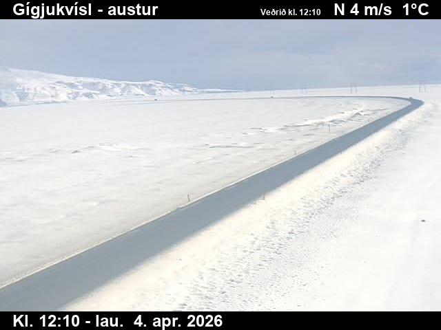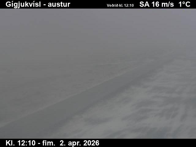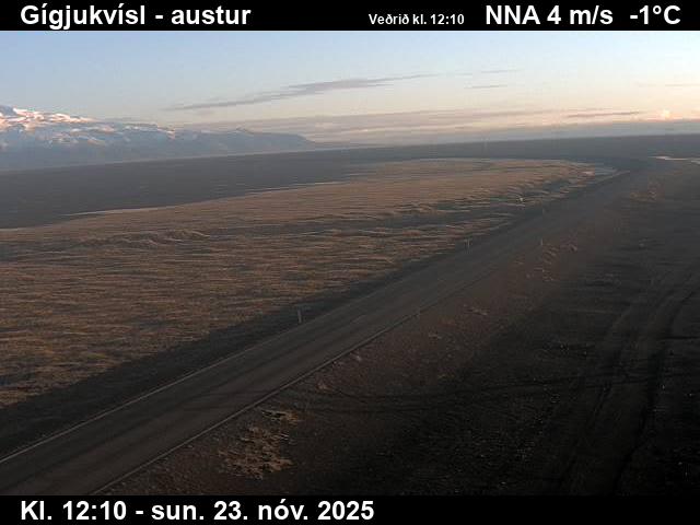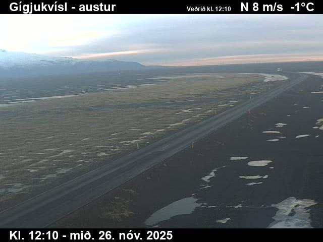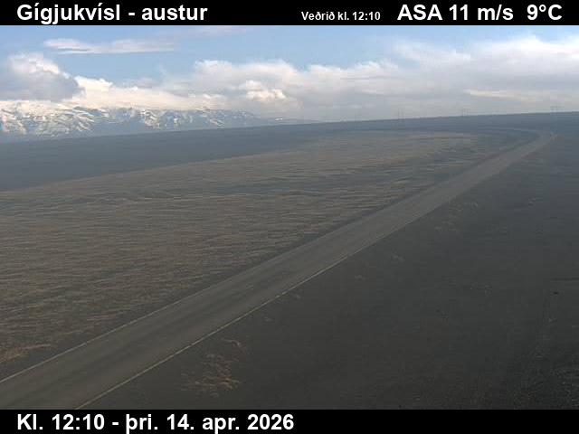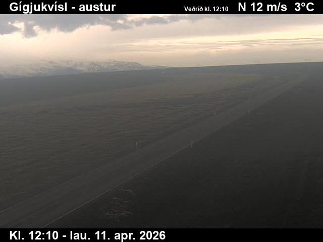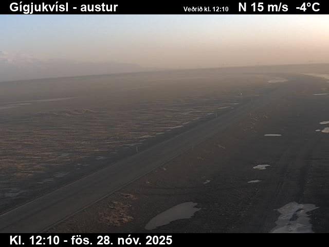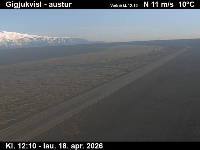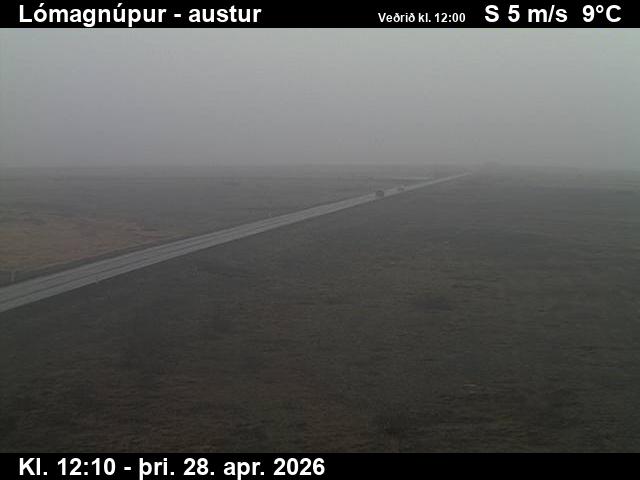 Kirkjubæjarklaustur, Island - 6 km von Trestbakki: Hringvegur Richtung Nordosten (Eldhraun Lavafeld) - Ein Blick auf die aktuelle Strassen- und Wettersituation.