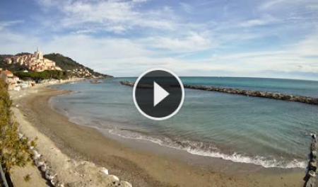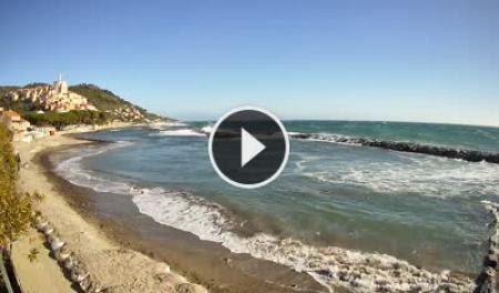 - Blick über den wunderbaren Strand von Cervo Ligure