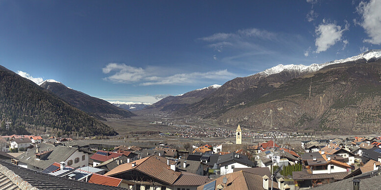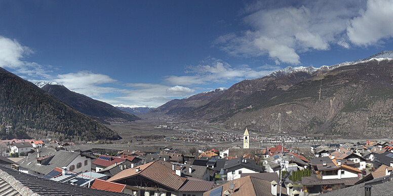 Latsch, Italien - 16.4 km von Albergo Corteraso: Panoramakamera Latsch - In Schenna macht die besondere Mischung aus Südtiroler Charme und mediterranem Lebensgefühl den Reiz aus. In den sieben Ortsteilen am Sonnenhang oberhalb von Meran genießen Urlauber Ferien für jeden Geschmack.