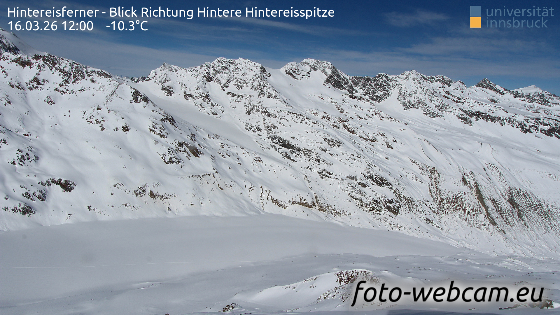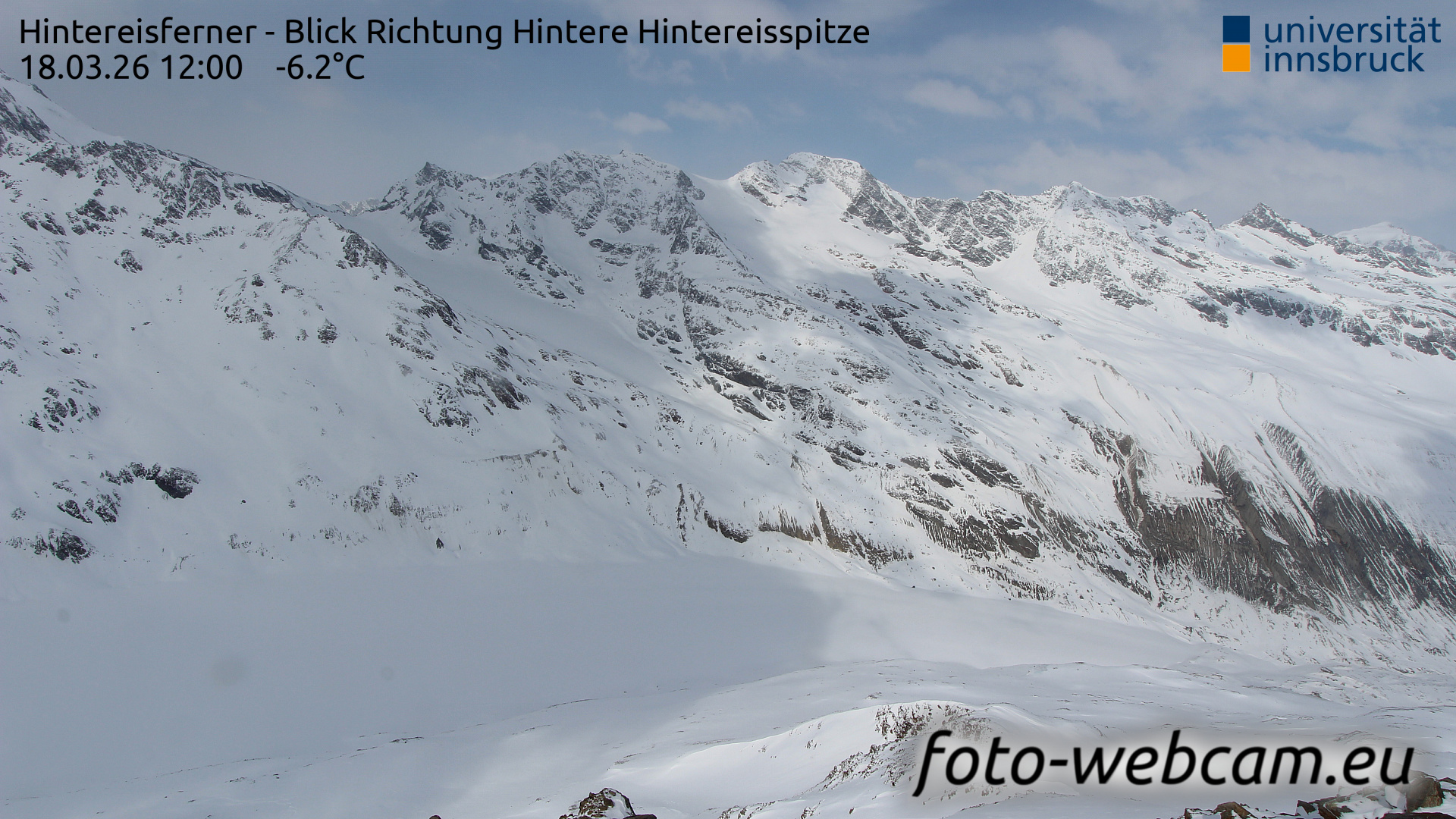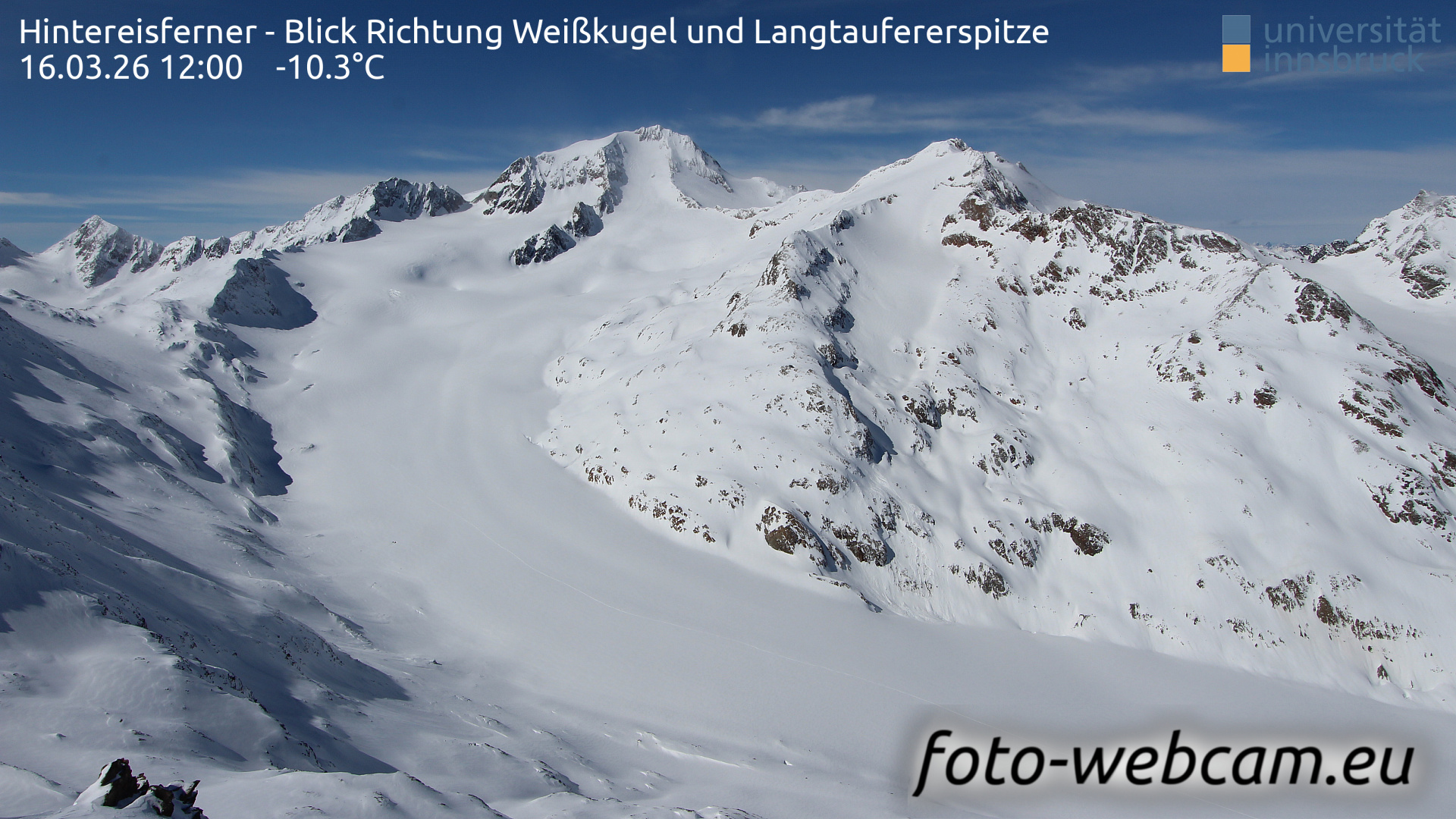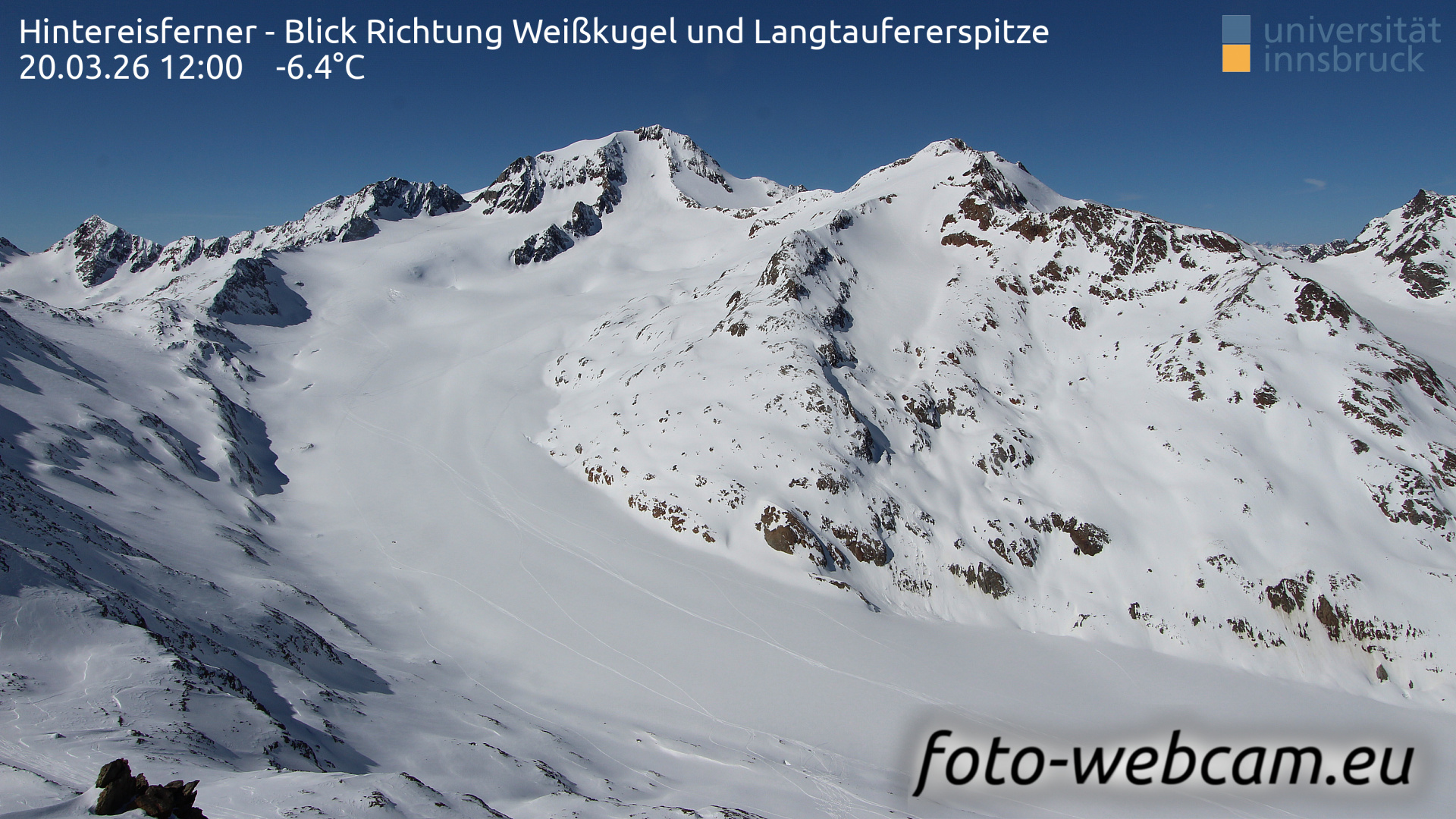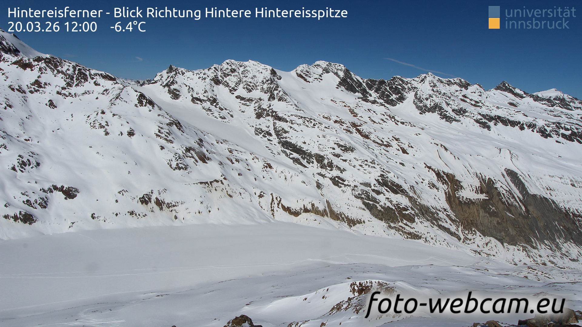 Hintereisferner, Österreich - 5.2 km von Albergo Corteraso: HD Foto-Webcam Hintereisferner 2 - Hintereisferner - Blick Richtung Hintere Hintereisspitze.