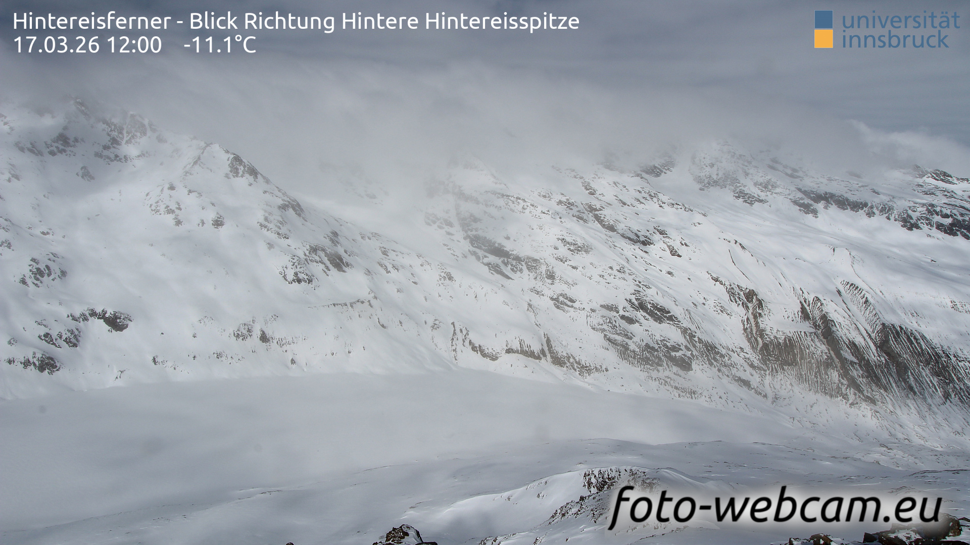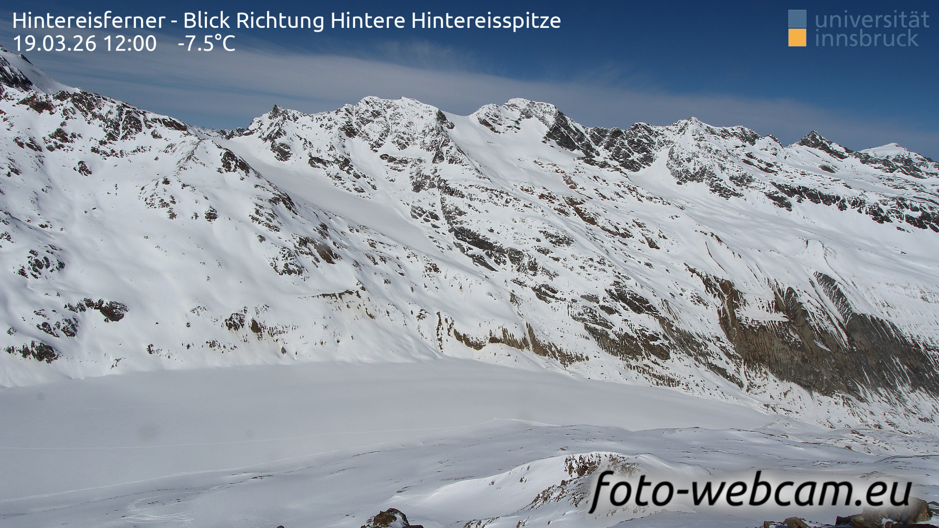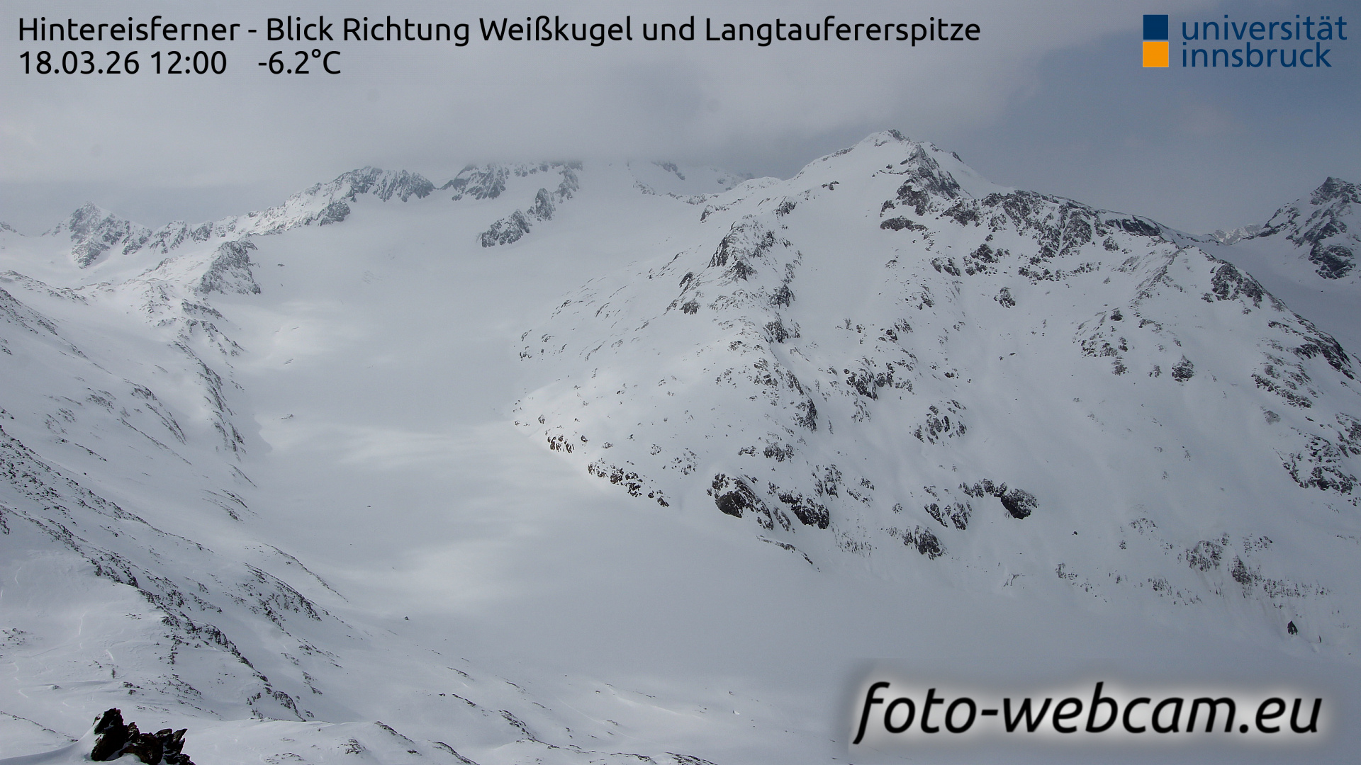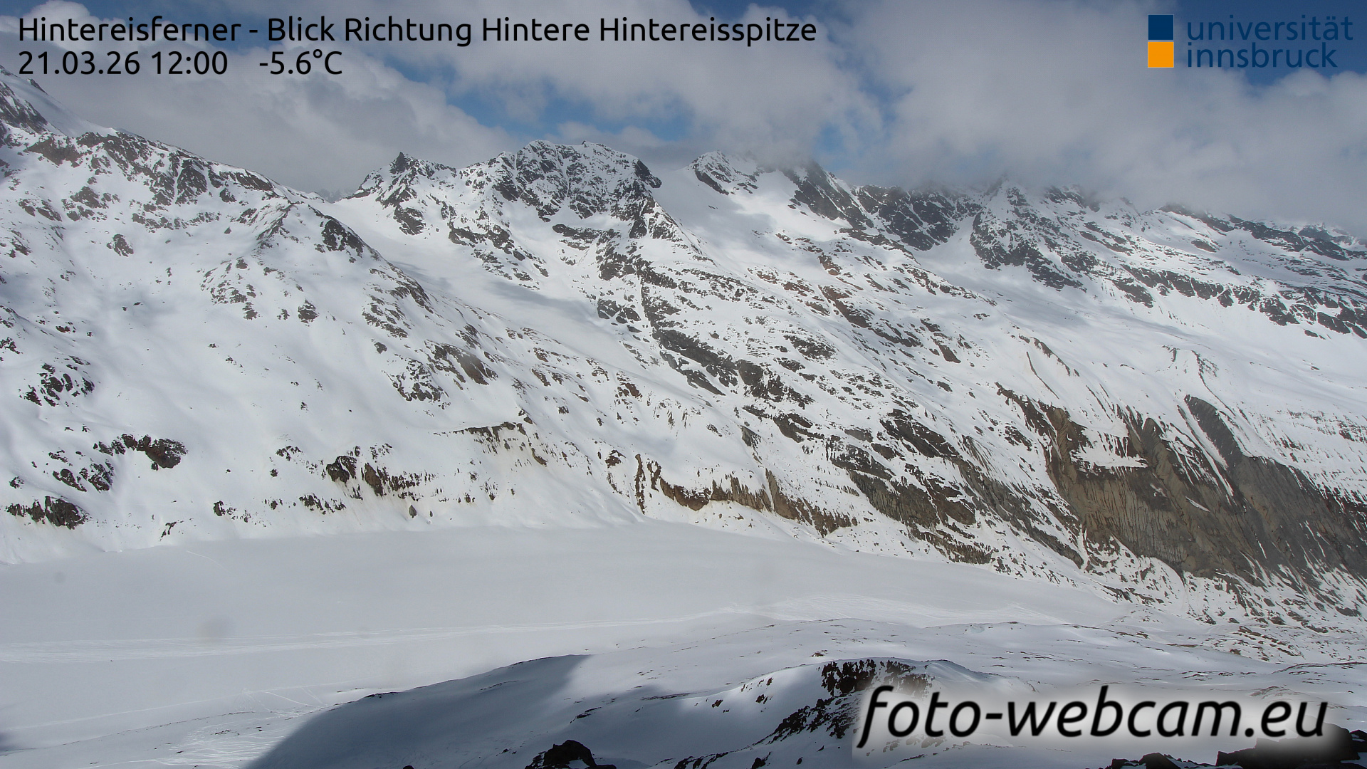 Hintereisferner, Österreich - 5.2 km von Albergo Corteraso: HD Foto-Webcam Hintereisferner 2 - Hintereisferner - Blick Richtung Hintere Hintereisspitze.