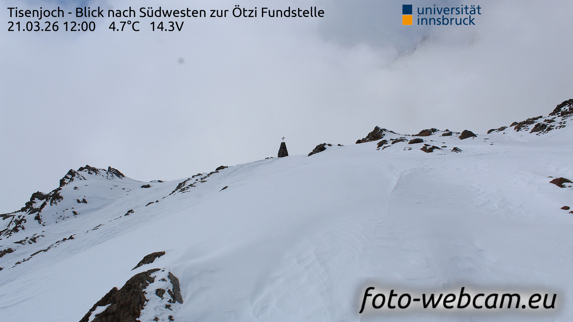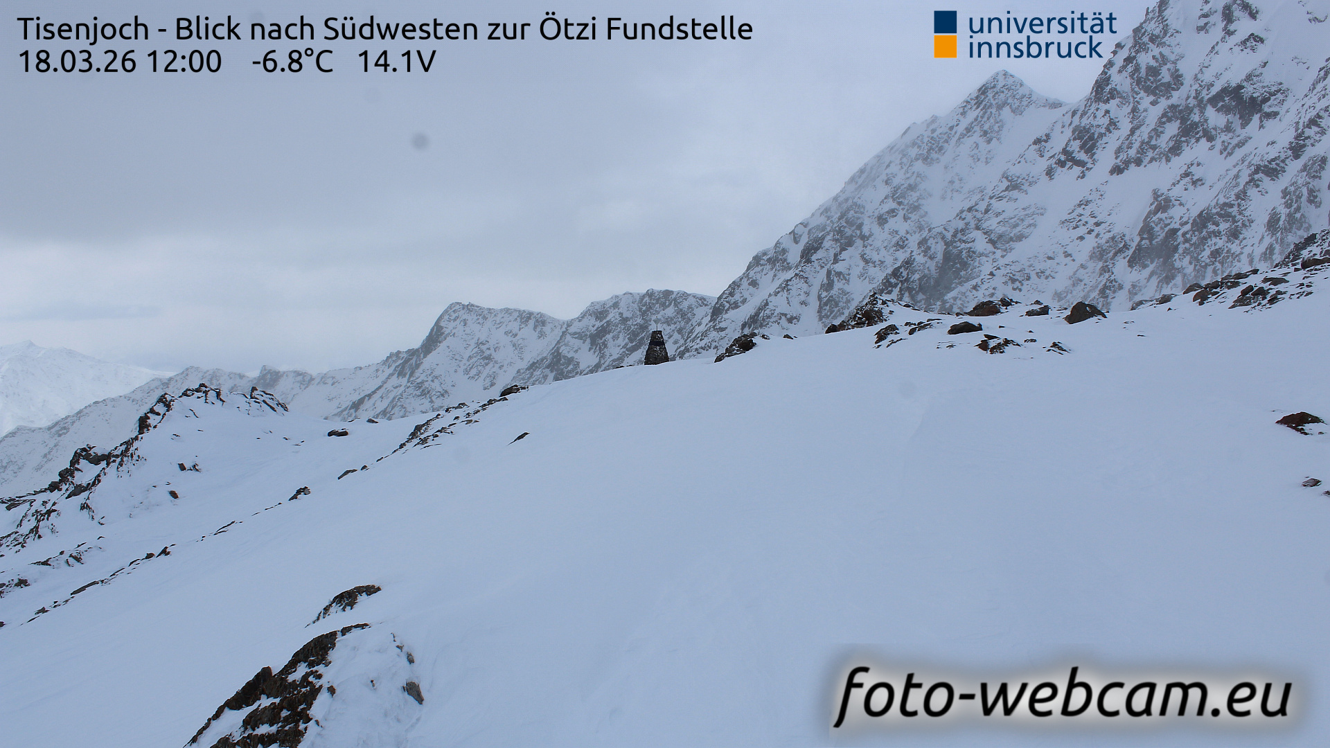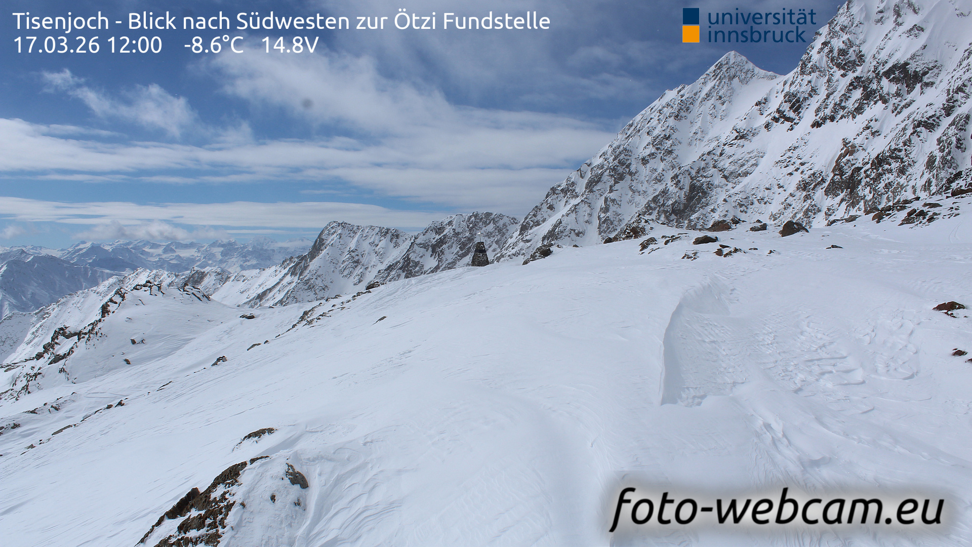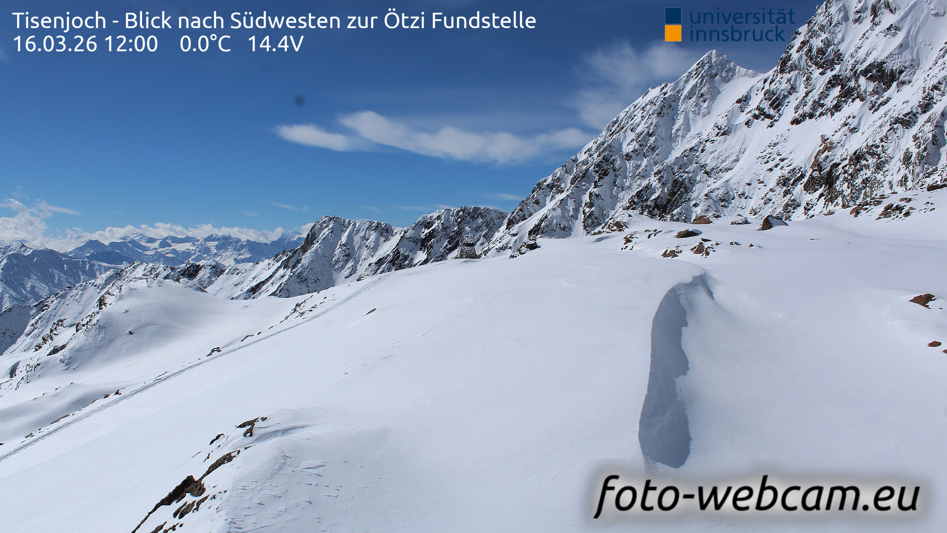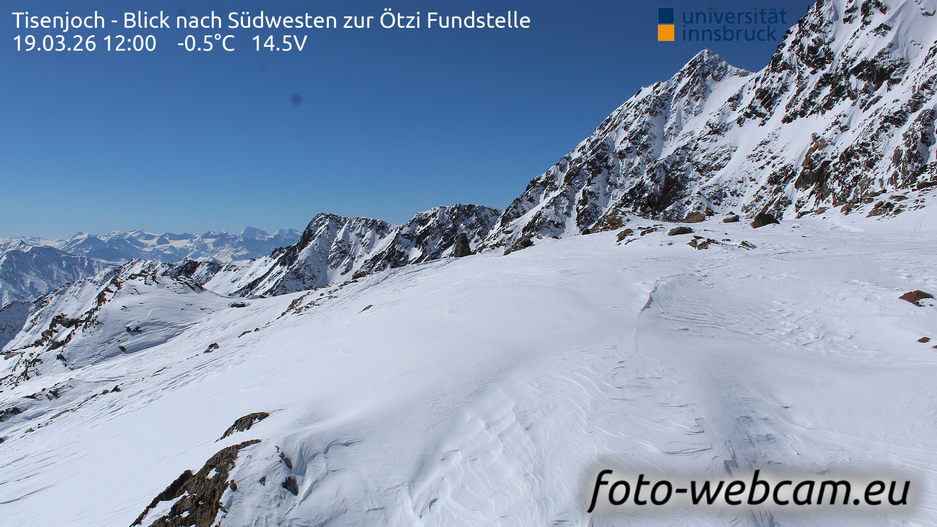 Hintereisferner, Österreich - 5.2 km von Albergo Corteraso: HD Foto-Webcam Hintereisferner 2 - Hintereisferner - Blick Richtung Hintere Hintereisspitze.