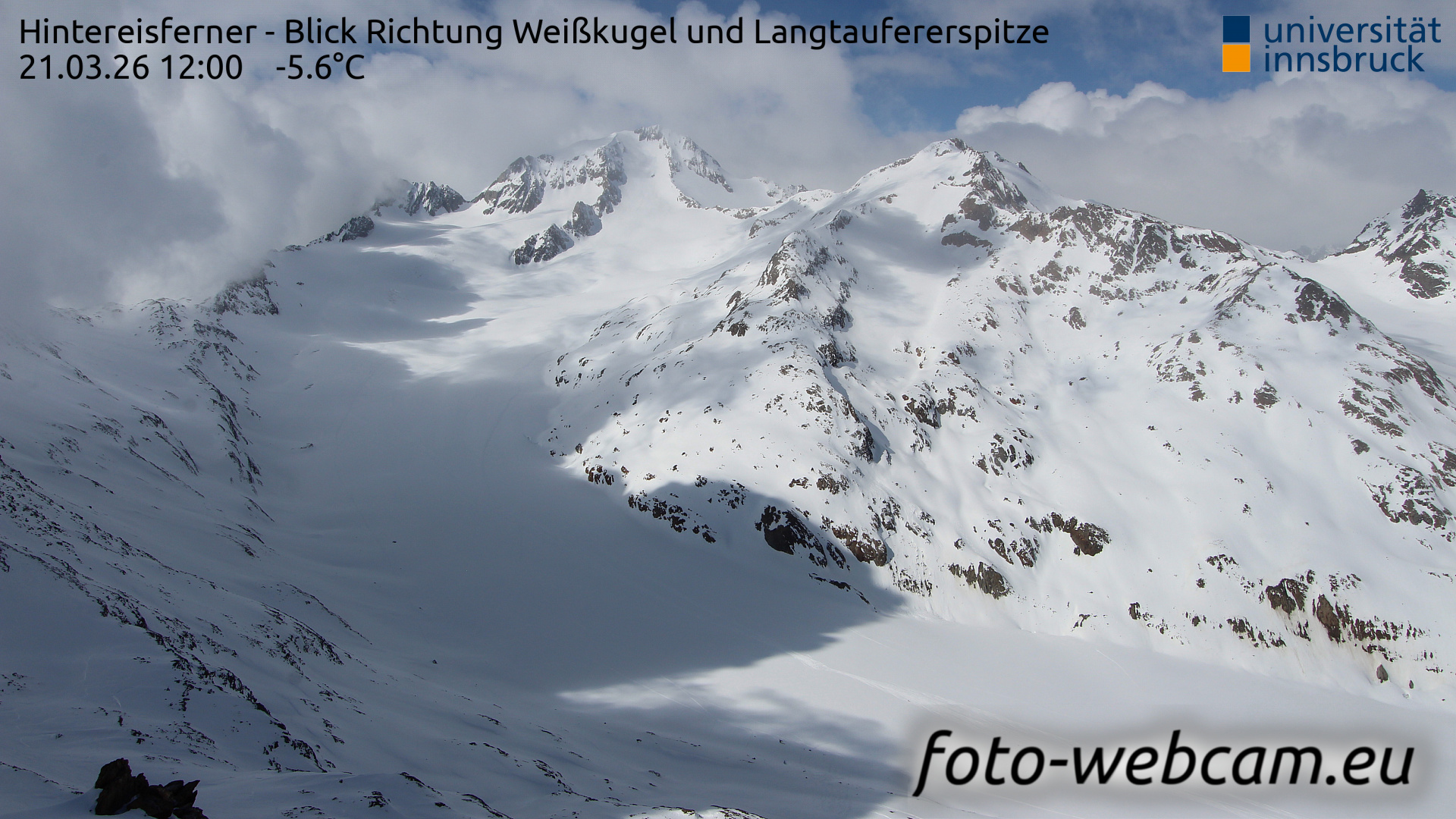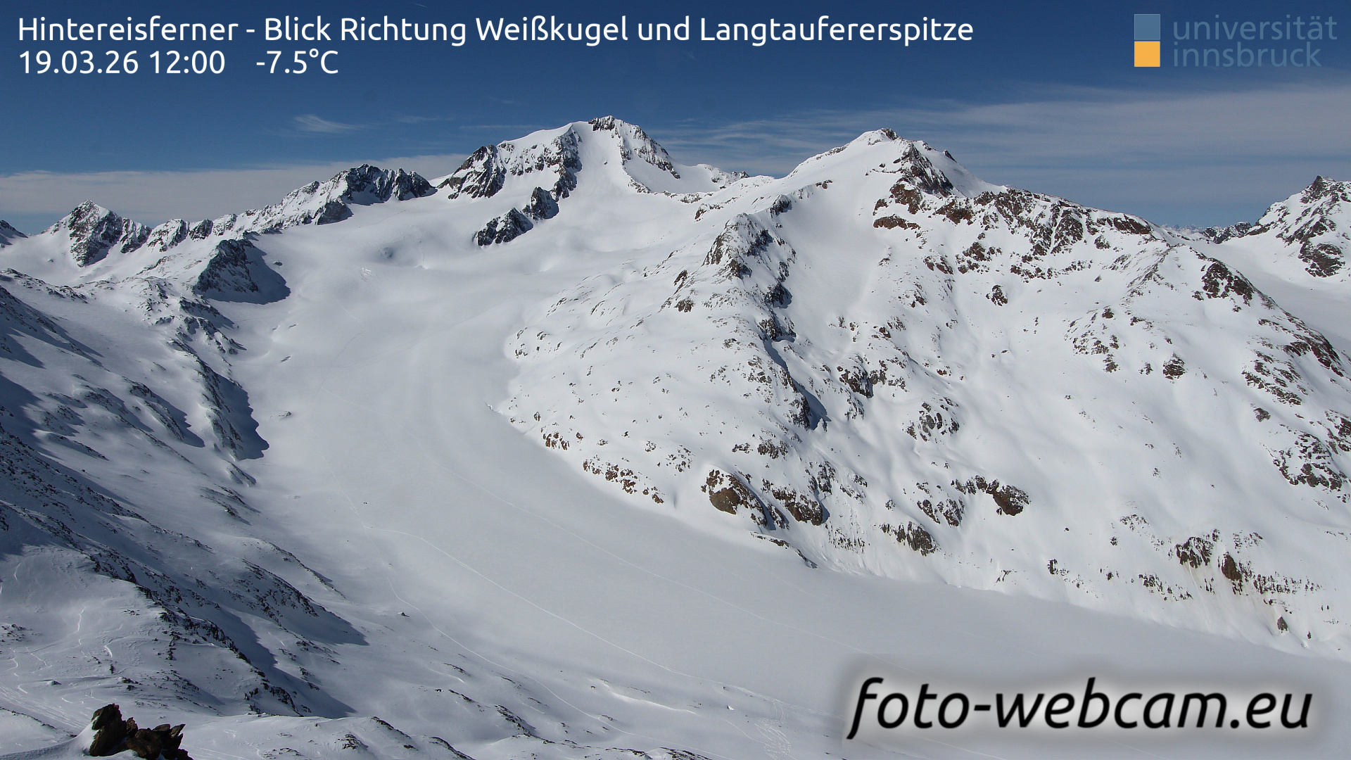 Hintereisferner, Österreich - 5.2 km von Albergo Corteraso: HD Foto-Webcam Hintereisferner 1 - Hintereisferner - Blick Richtung Weißkugel und Langtaufererspitze.