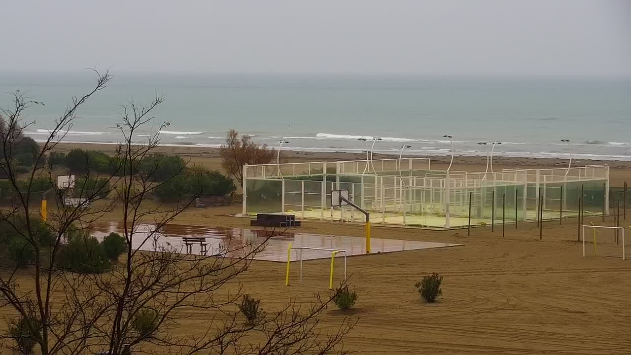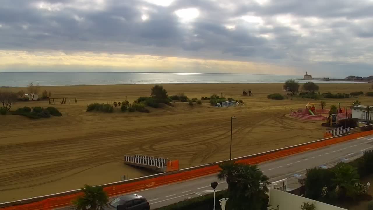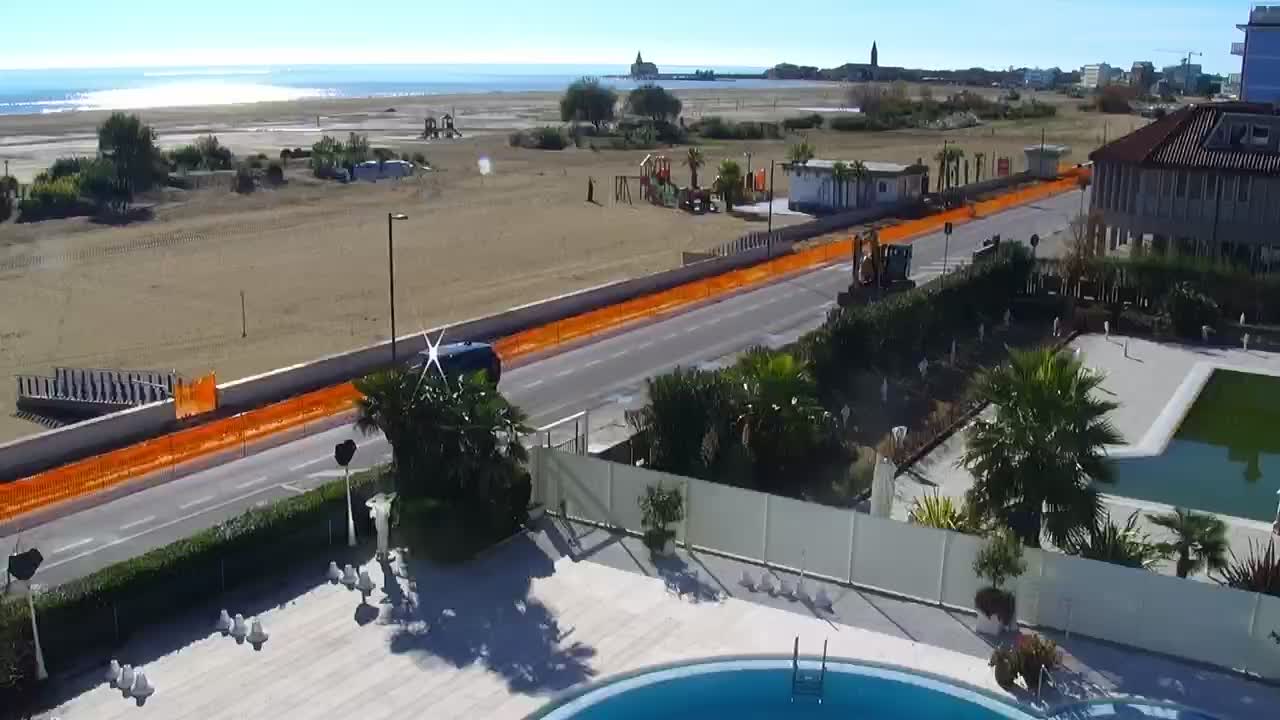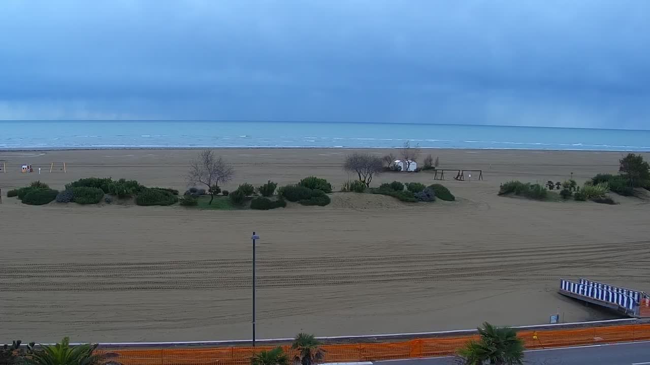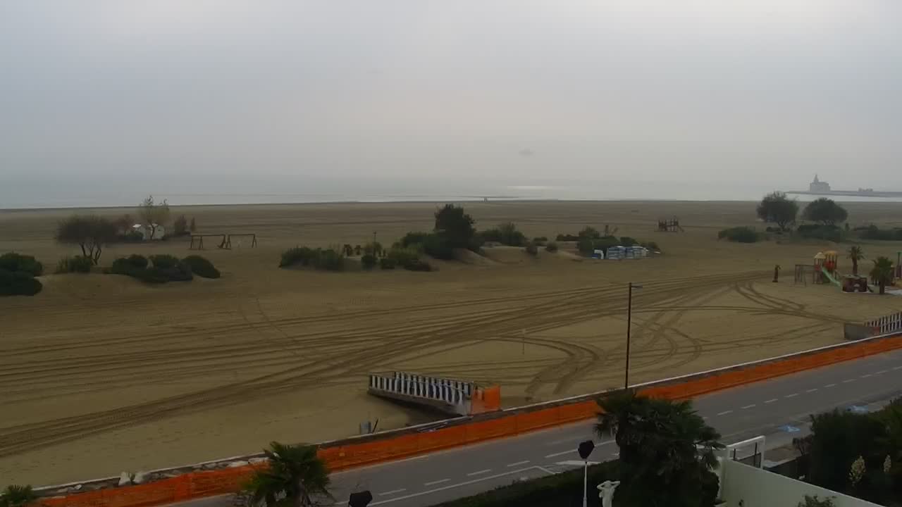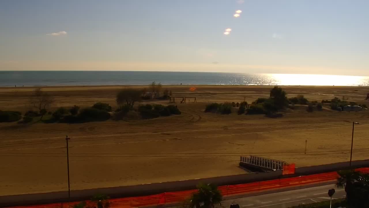 - Blick über die Strandpromenade und das lebende Felsenriff von Caorle