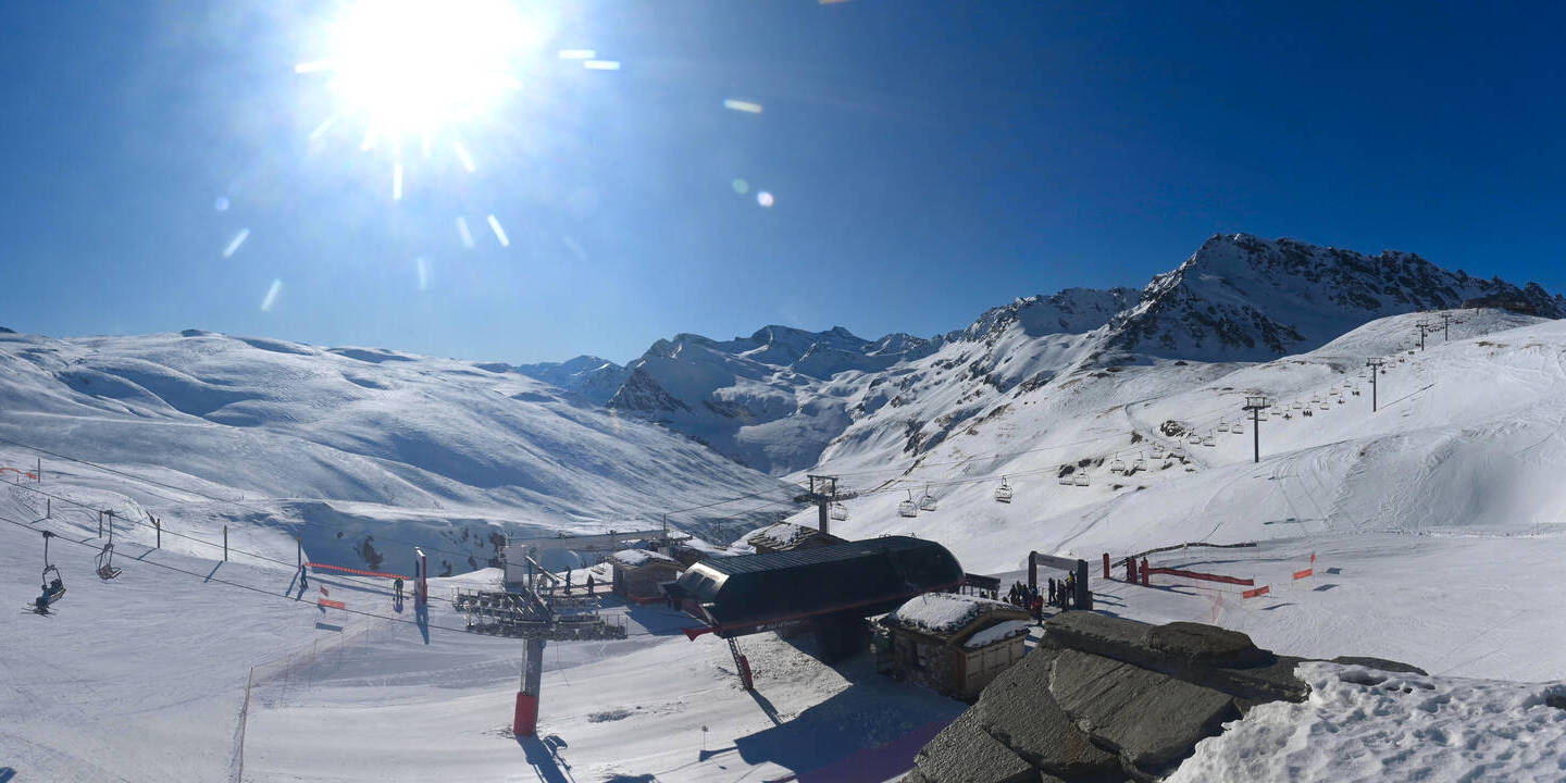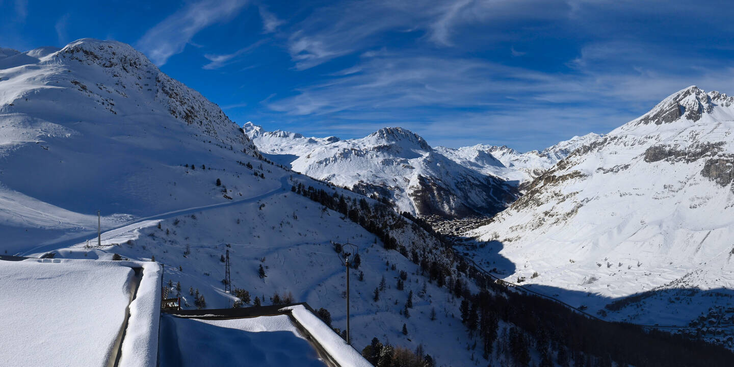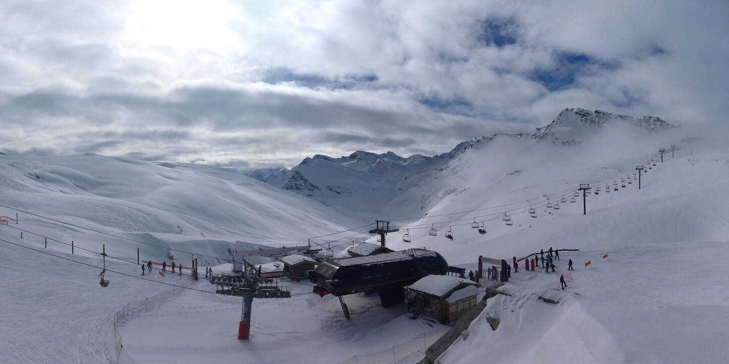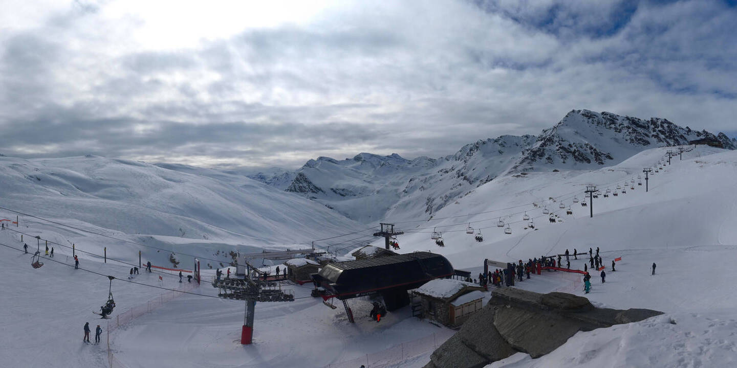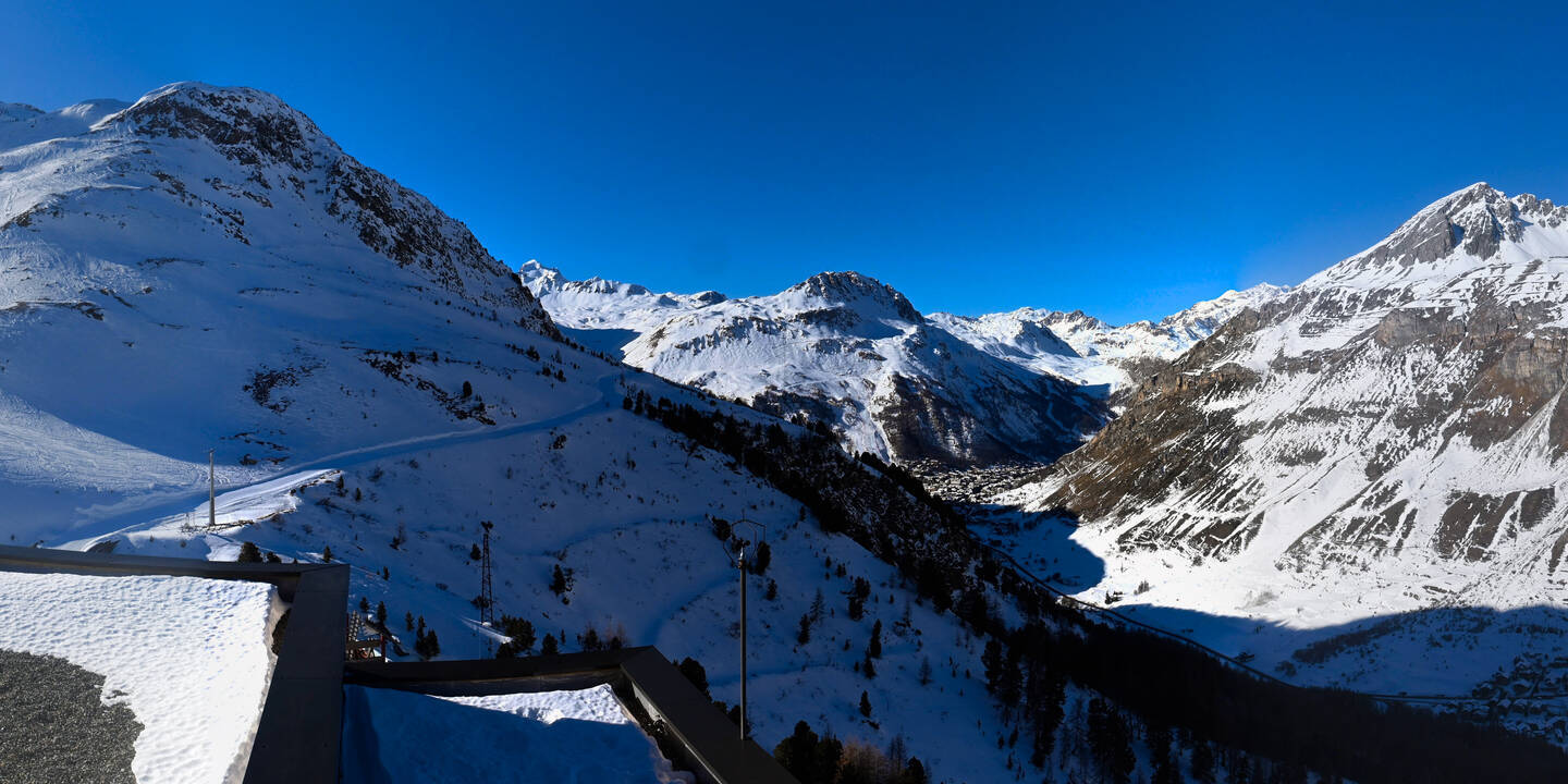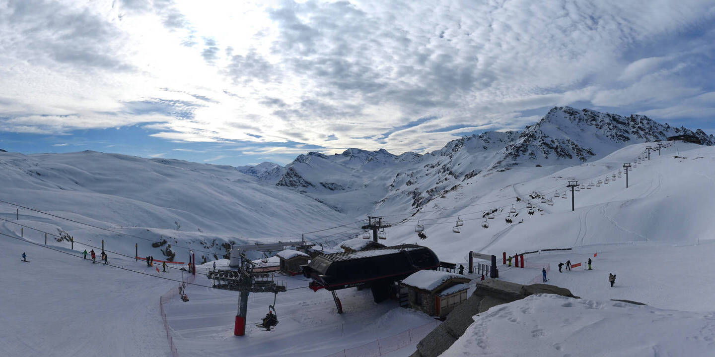 Val-d'Isère, Frankreich - 9.8 km von Alpi Vaudet: 360°-Panorama Val d'Isère - Front de Neige