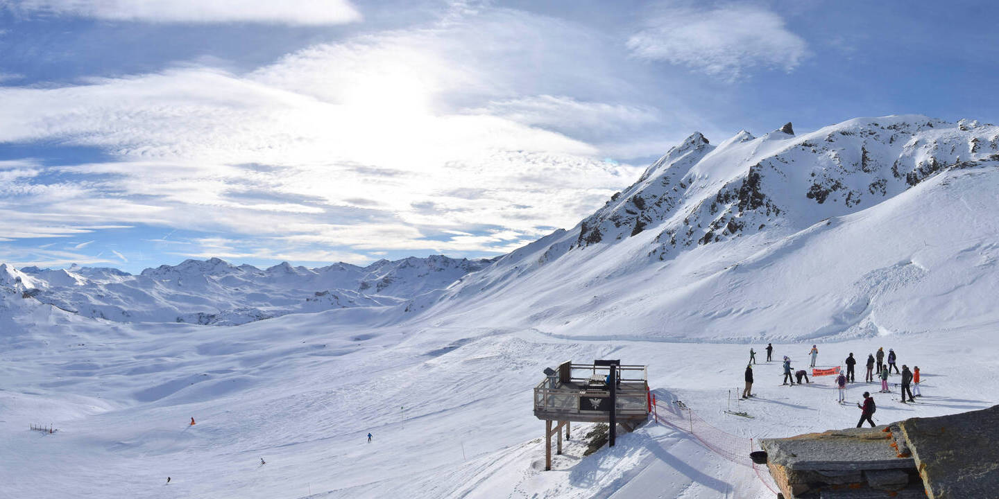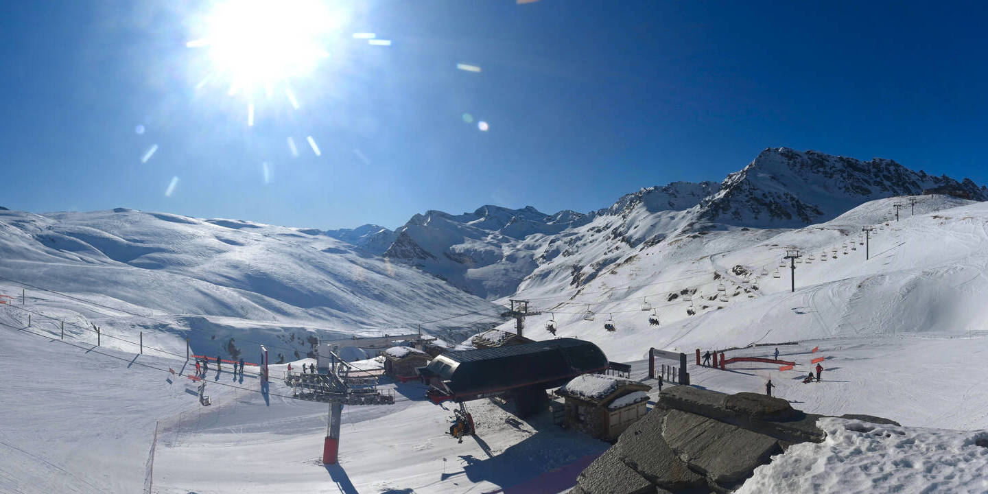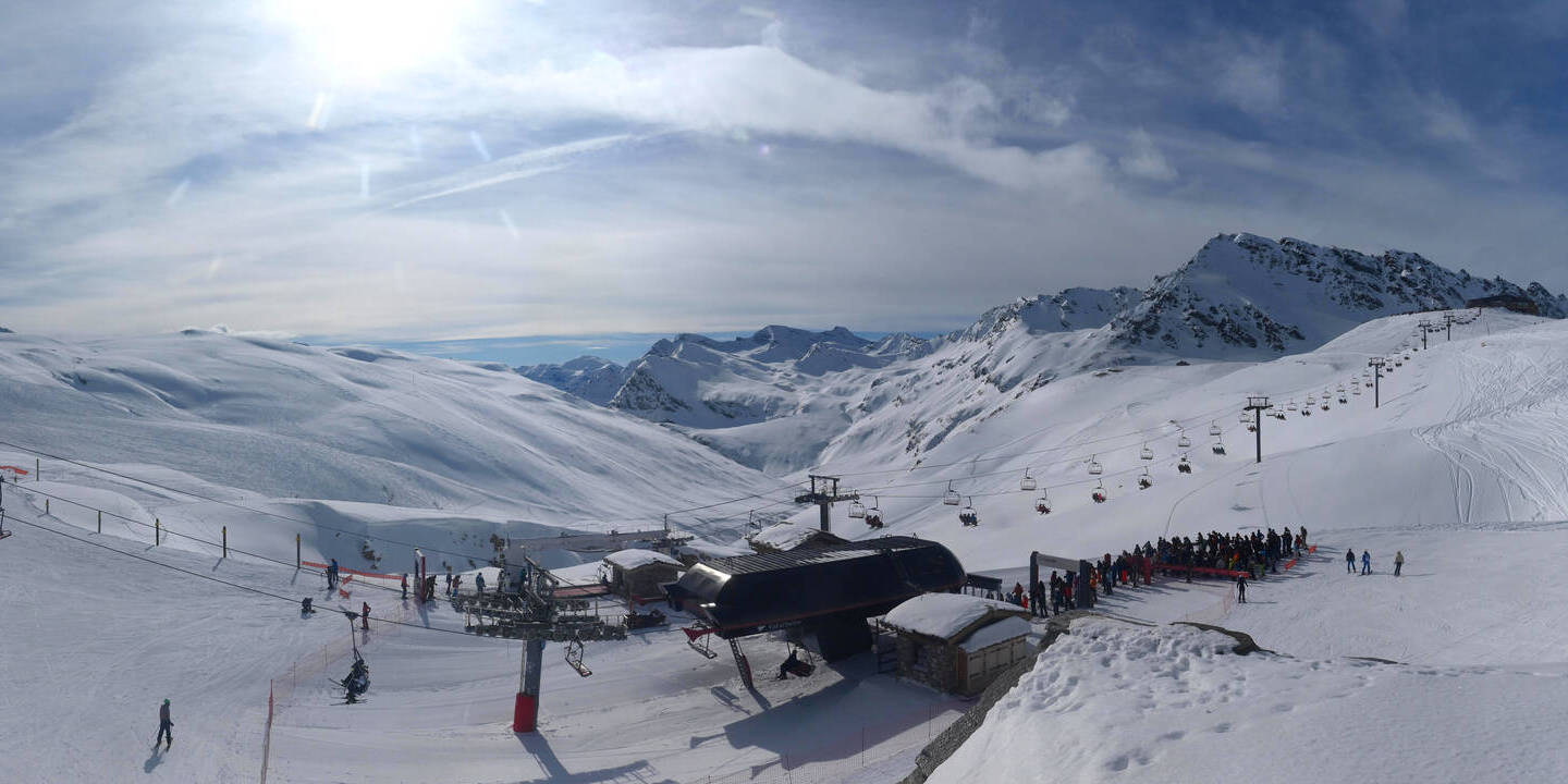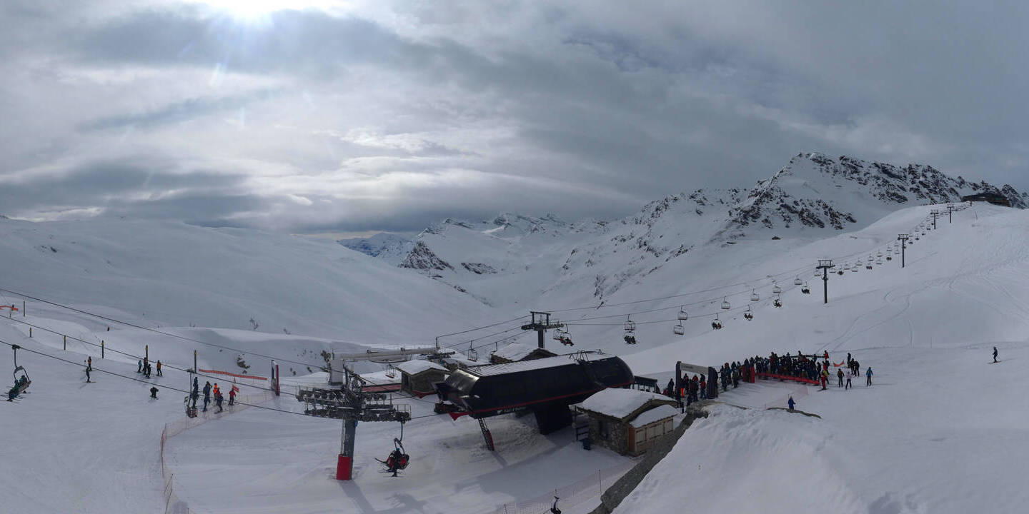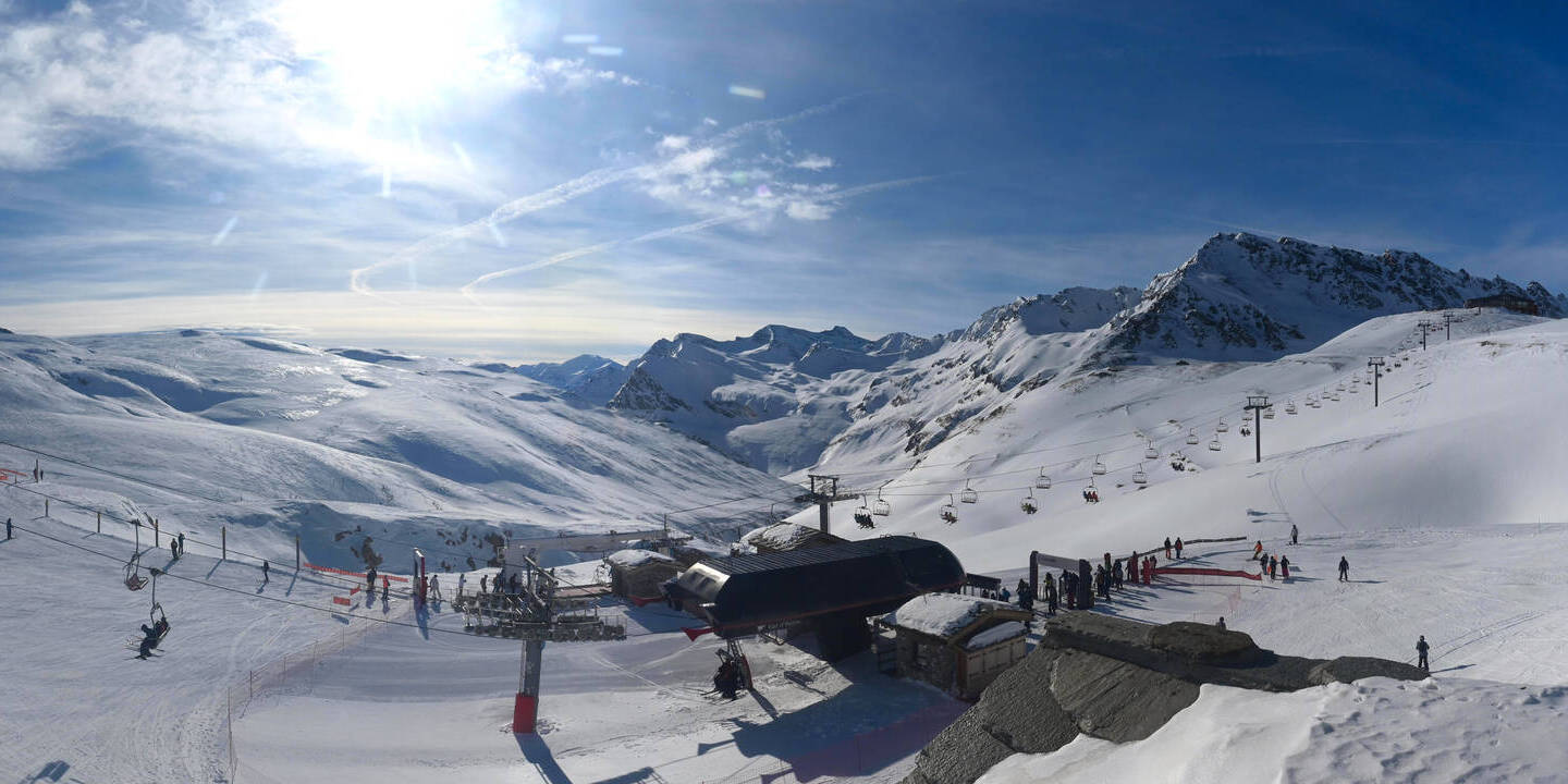 Val-d'Isère, Frankreich - 9.8 km von Alpi Vaudet: 360°-Panorama Val d'Isère - Front de Neige