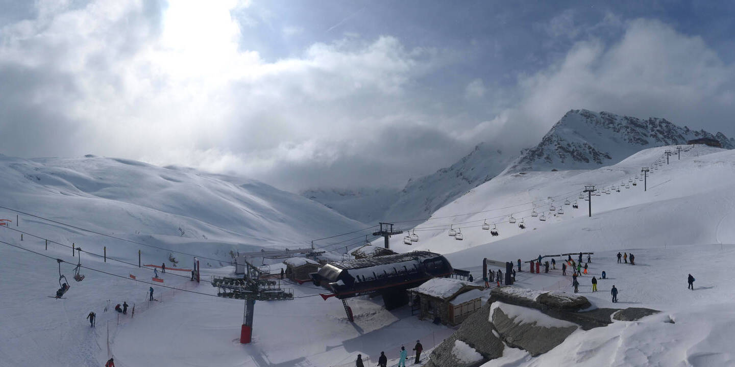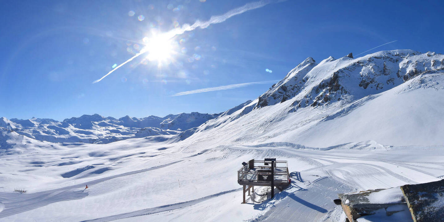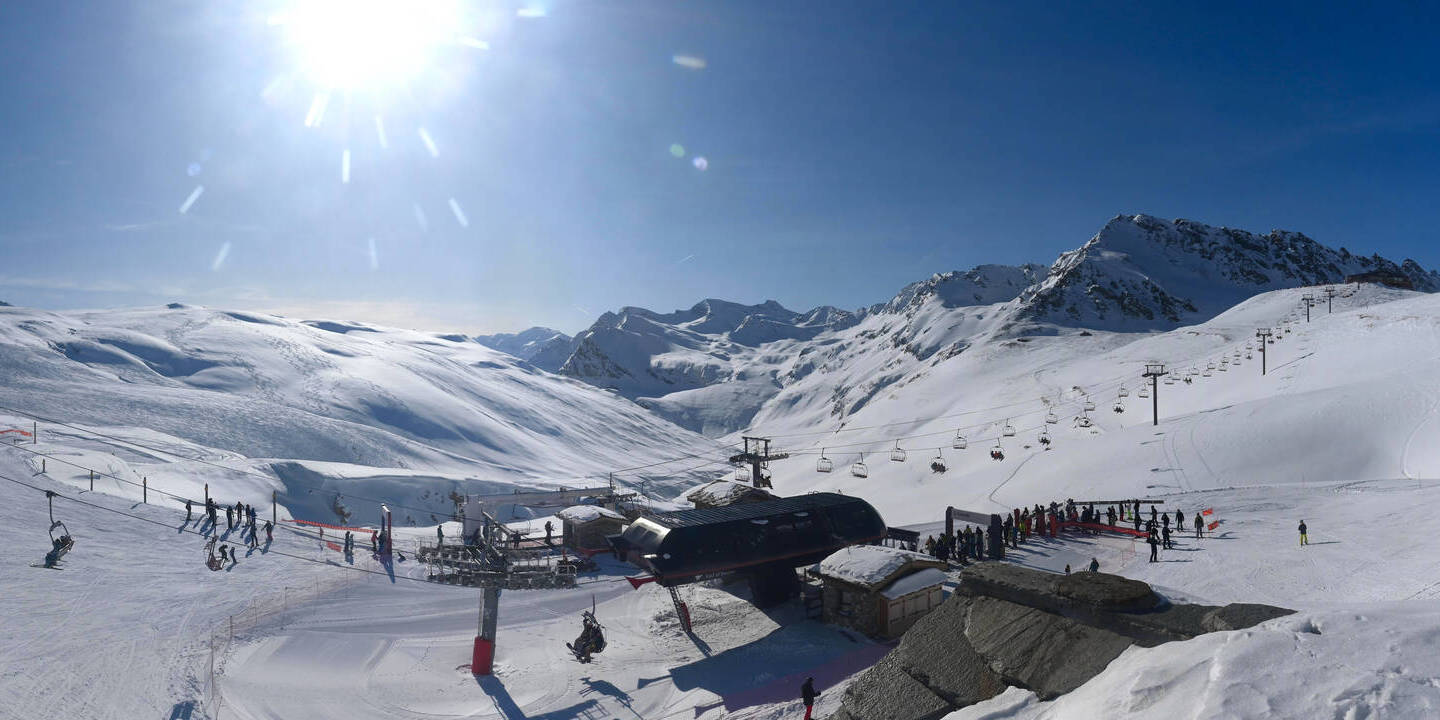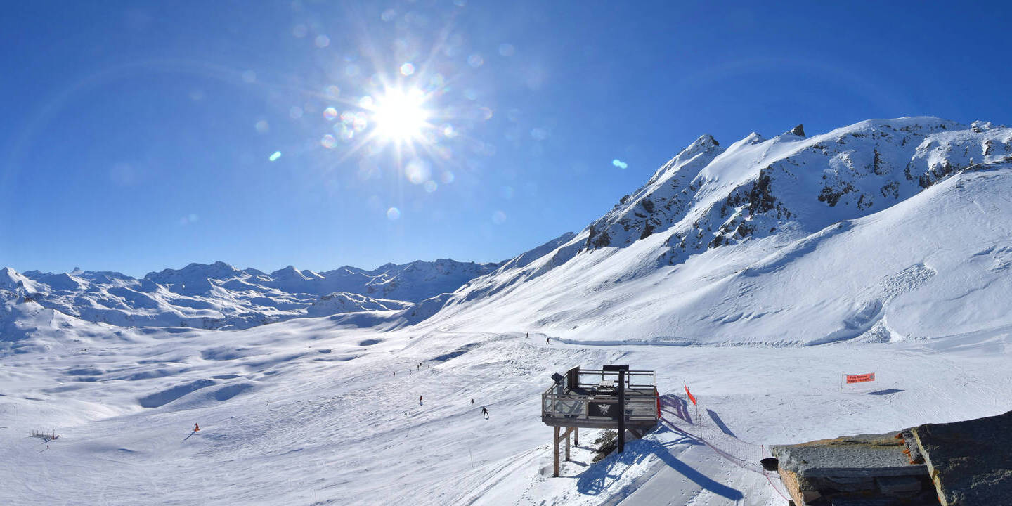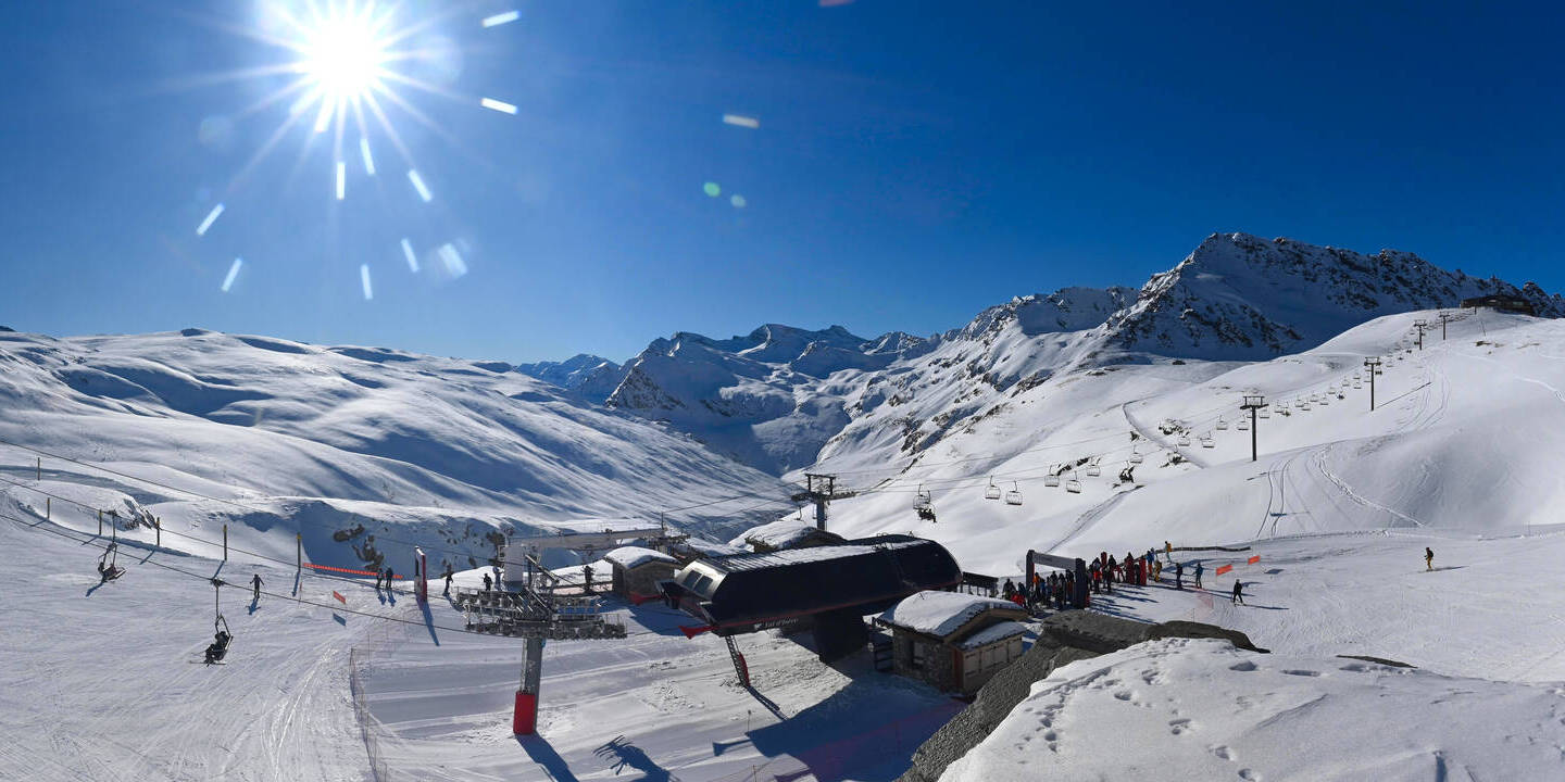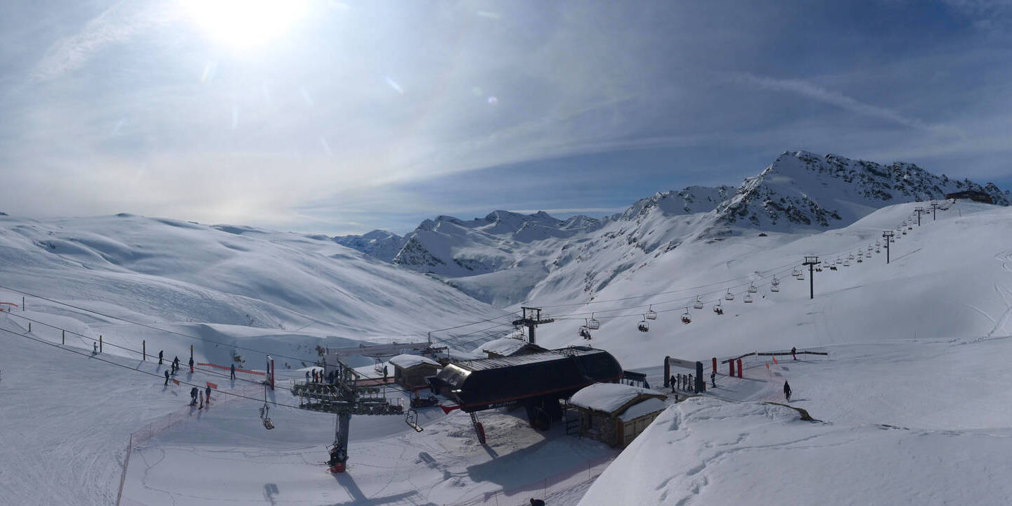 Val-d'Isère, Frankreich - 9.8 km von Alpi Vaudet: 360°-Panorama Val d'Isère - Front de Neige