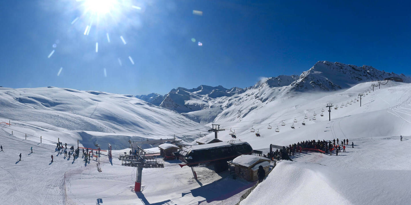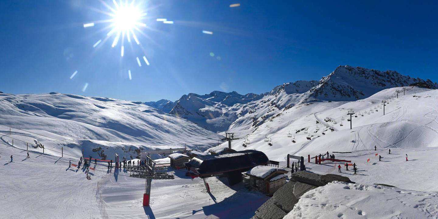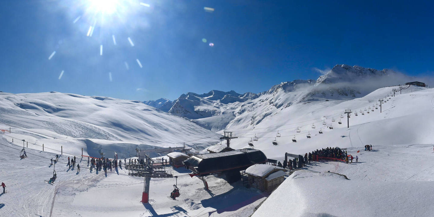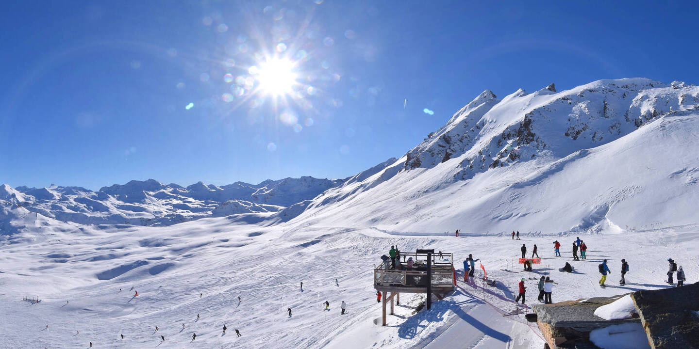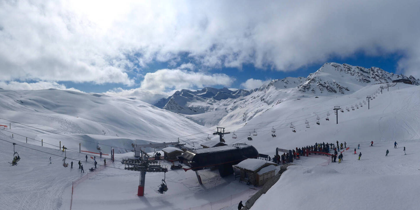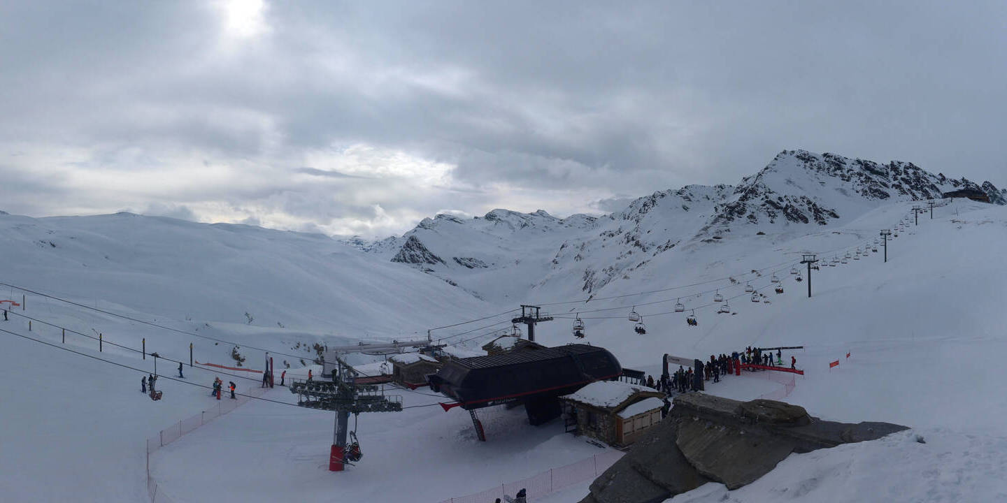Val-d'Isère, Frankreich - 9.8 km von Alpi Vaudet: 360°-Panorama Val d'Isère - Front de Neige
