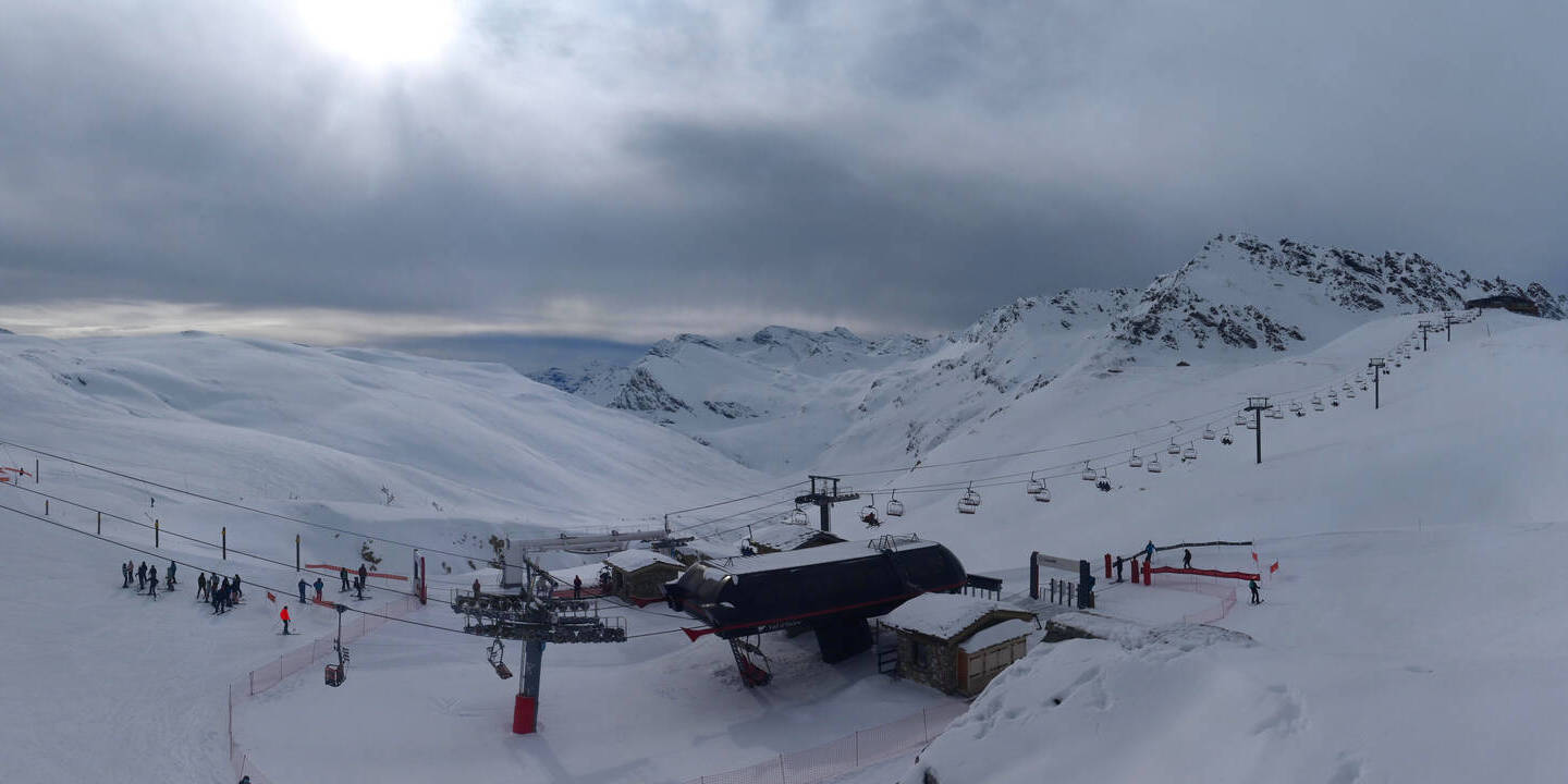 Val-d'Isère, Frankreich - 9.8 km von Alpi Vaudet: 360°-Panorama Val d'Isère - Crête des Lessières